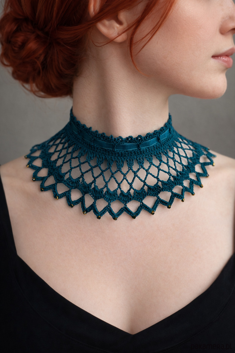 Poczuj klimat dawnych lat✨ dzięki temu wyjątkowemu naszyjnikowi w stylu retro. 100% bawełny:delikatność koronki i elegancja wiktoriańskiego wzornictwa.