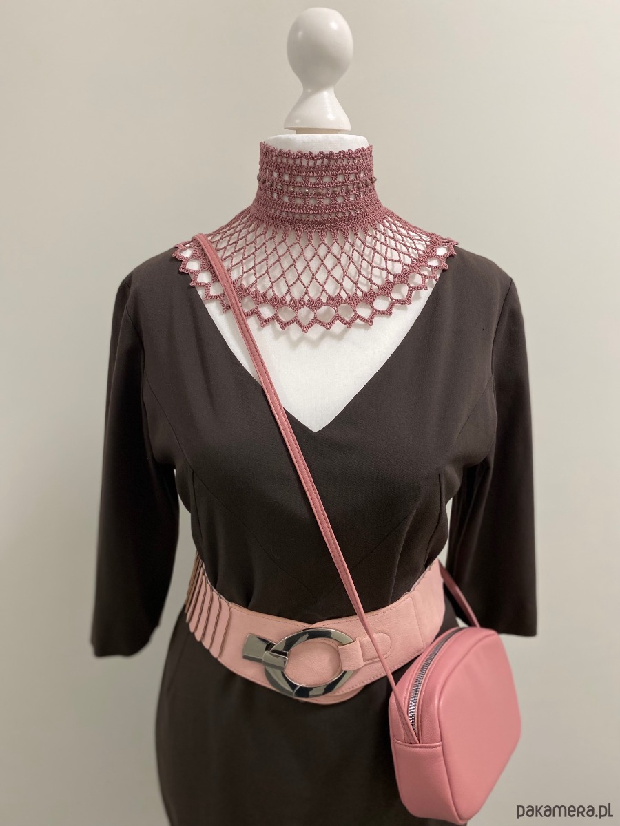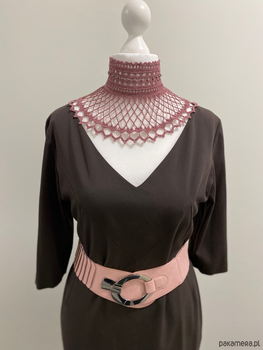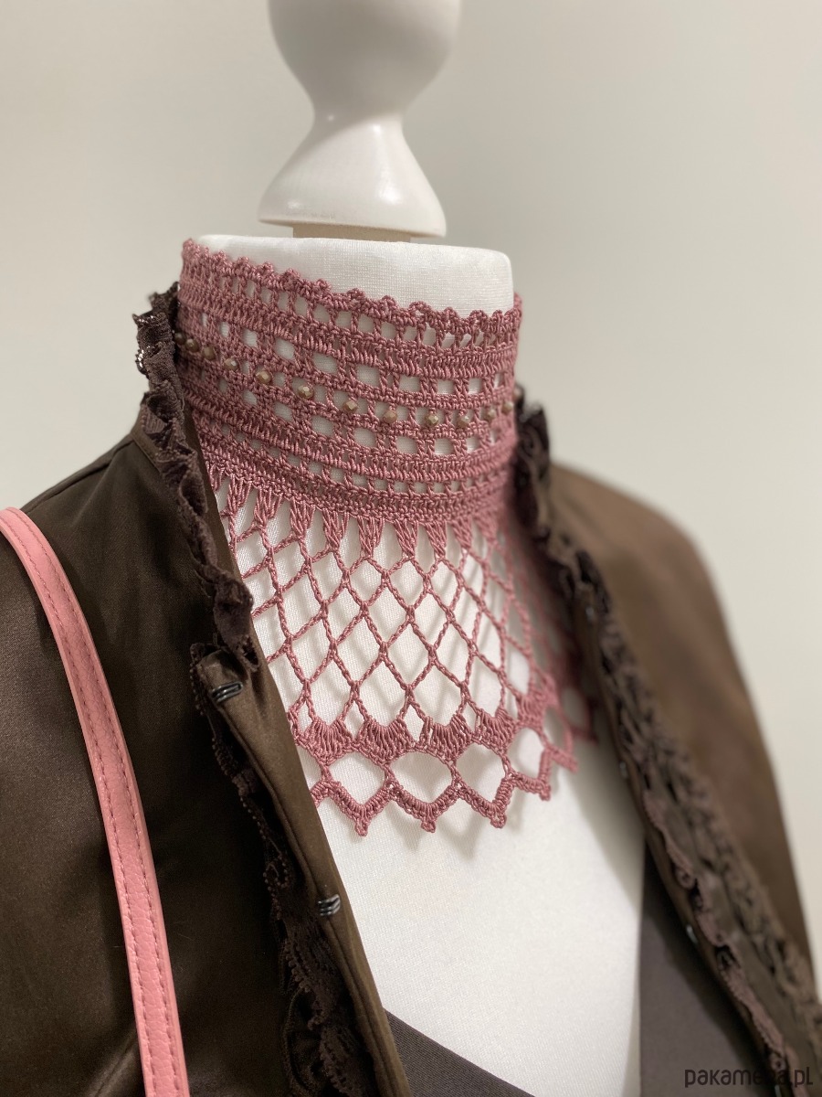 💕Śliczny kolor zgaszonego różu( stara róża) koronkowy naszyjnik kołnierz, delikatne koraliki połyskujące.