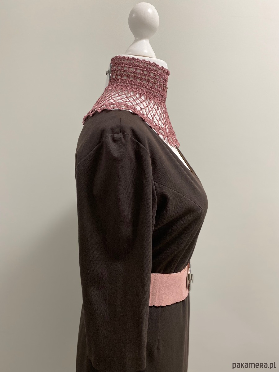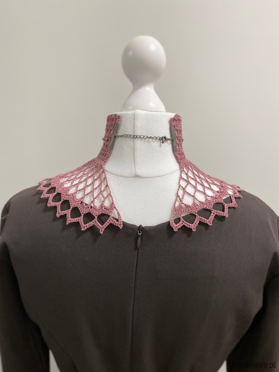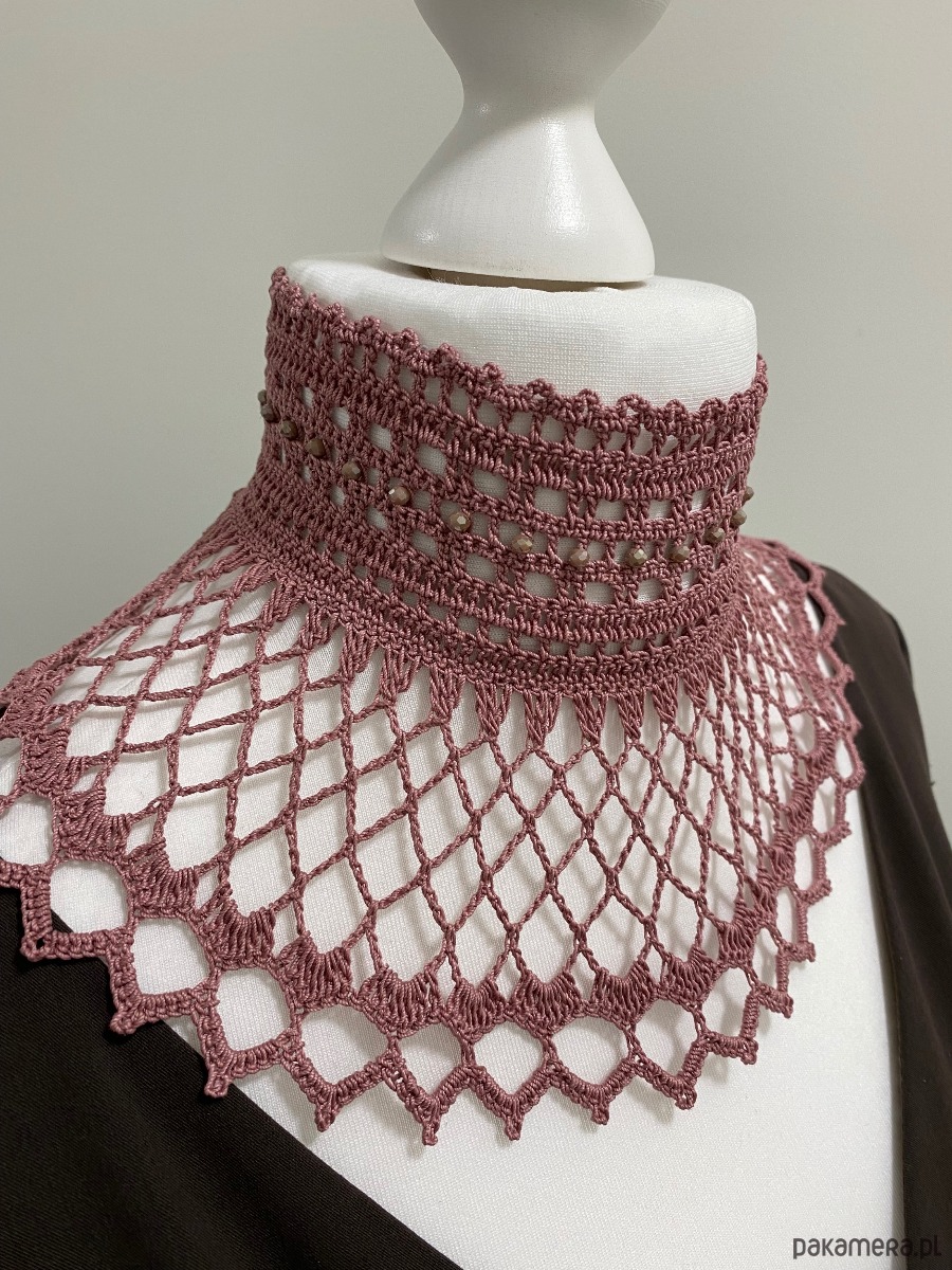 💕Śliczny kolor zgaszonego różu( stara róża) koronkowy naszyjnik kołnierz, delikatne koraliki połyskujące.