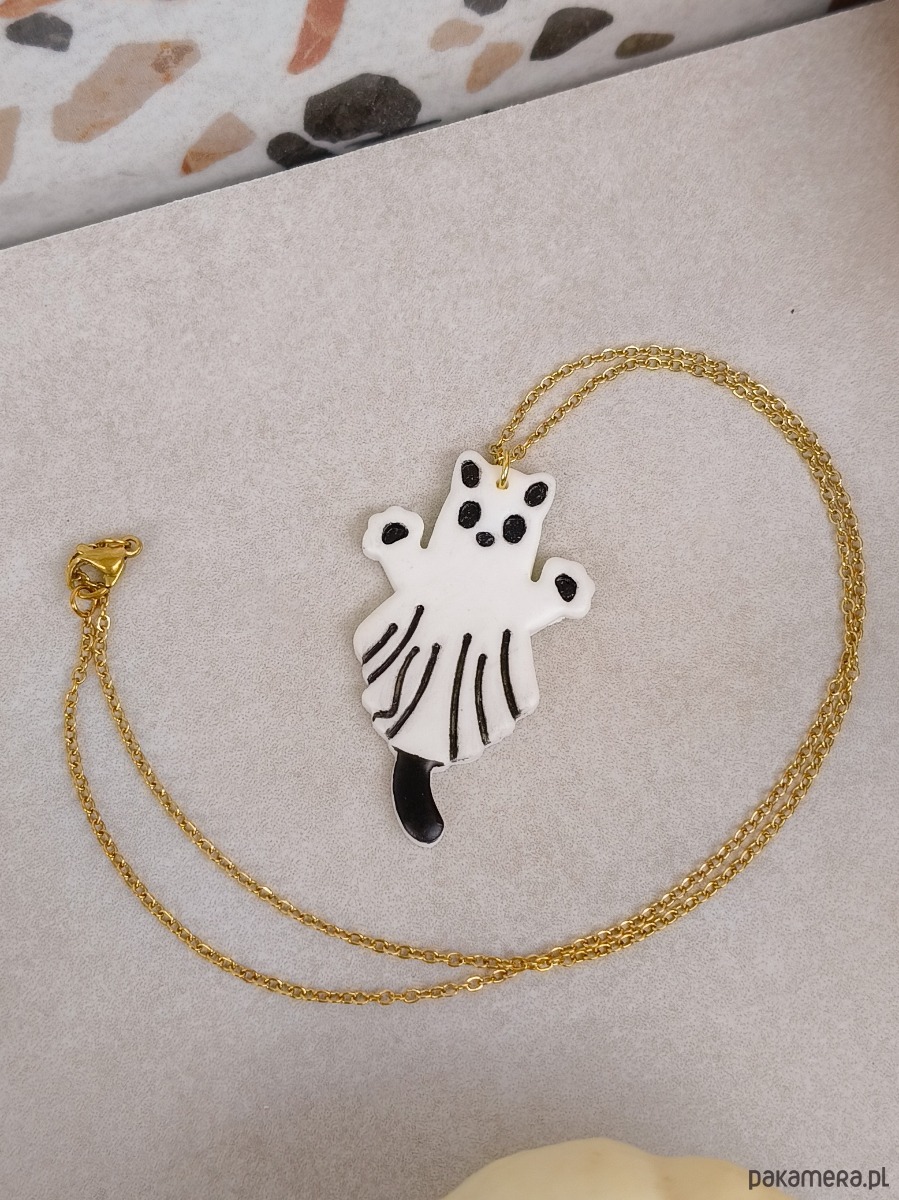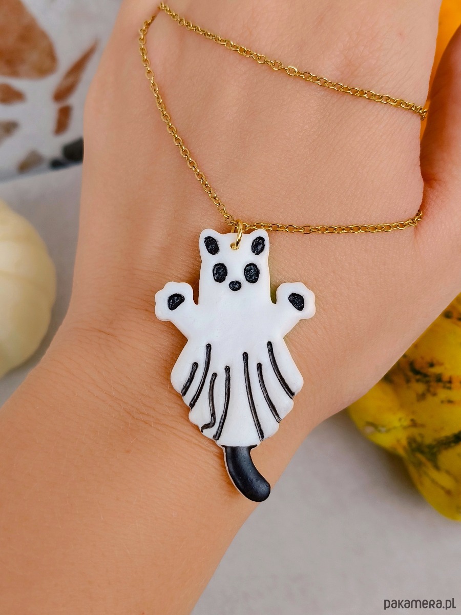 Naszyjnik kot duch, amulet z duchem, prezent na halloween, straszny kotek