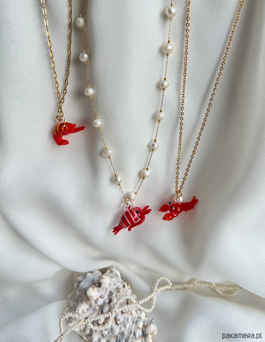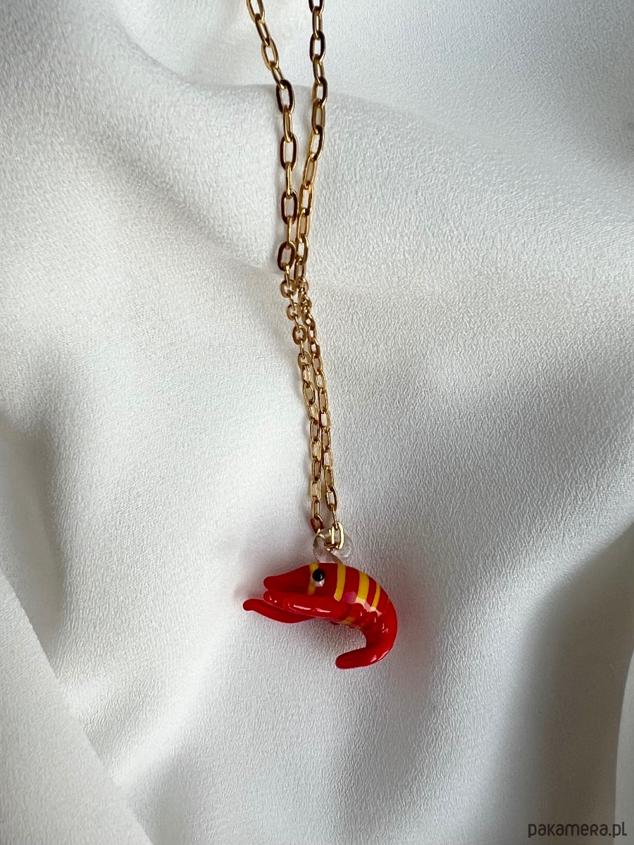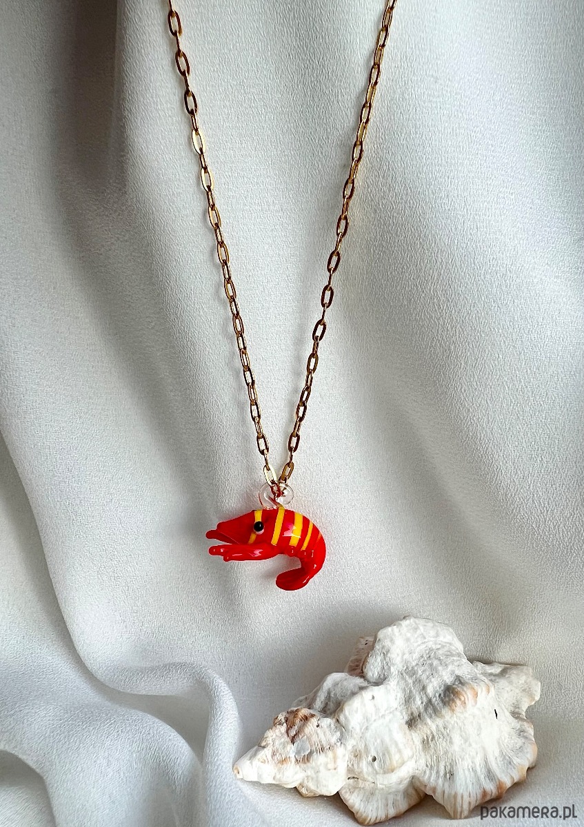 Piękny i oryginalny naszyjnik z najnowszej kolekcji Mare. Wykonany został ze stali chirurgicznej oraz lampworkowej (szklanej) zawieszki w kształcie czerwono żółtej krewetki.