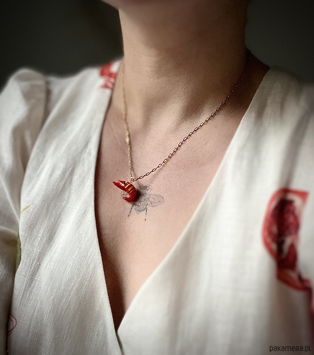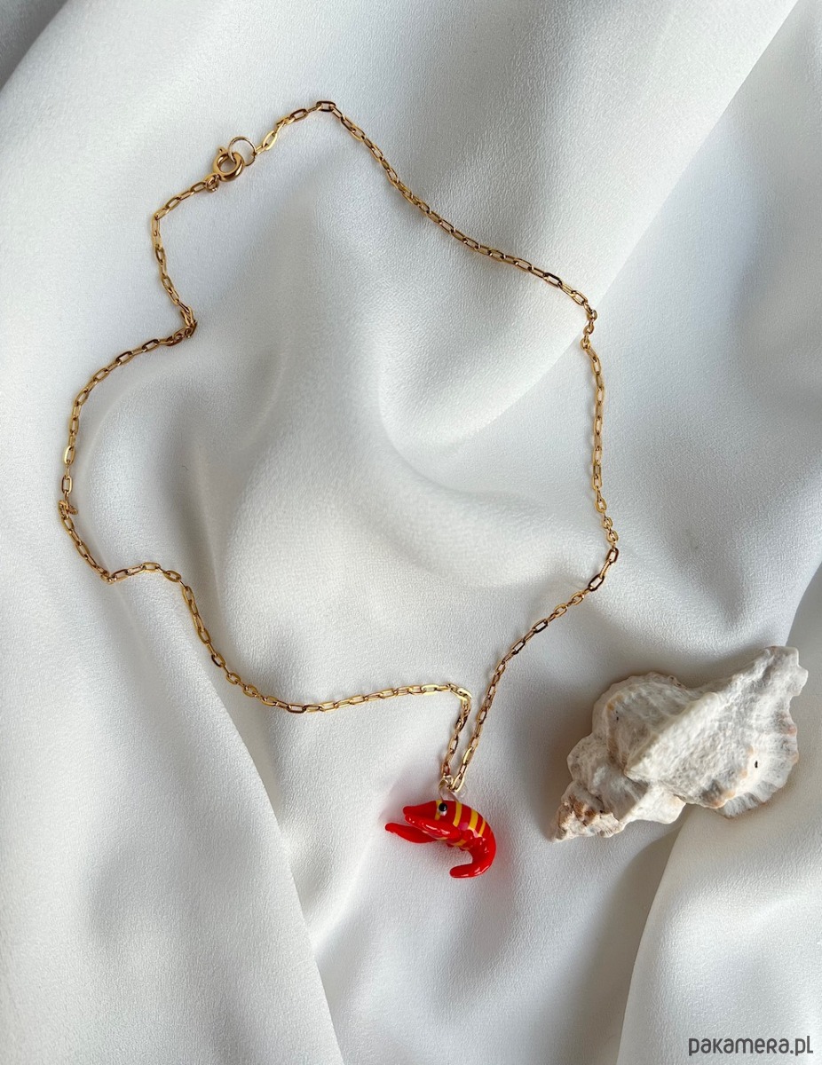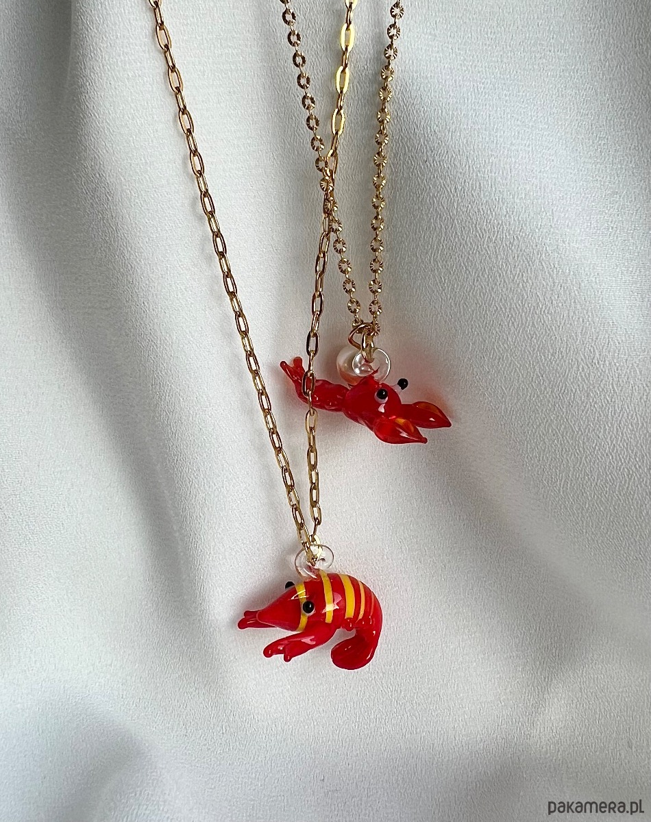 Piękny i oryginalny naszyjnik z najnowszej kolekcji Mare. Wykonany został ze stali chirurgicznej oraz lampworkowej (szklanej) zawieszki w kształcie czerwono żółtej krewetki.