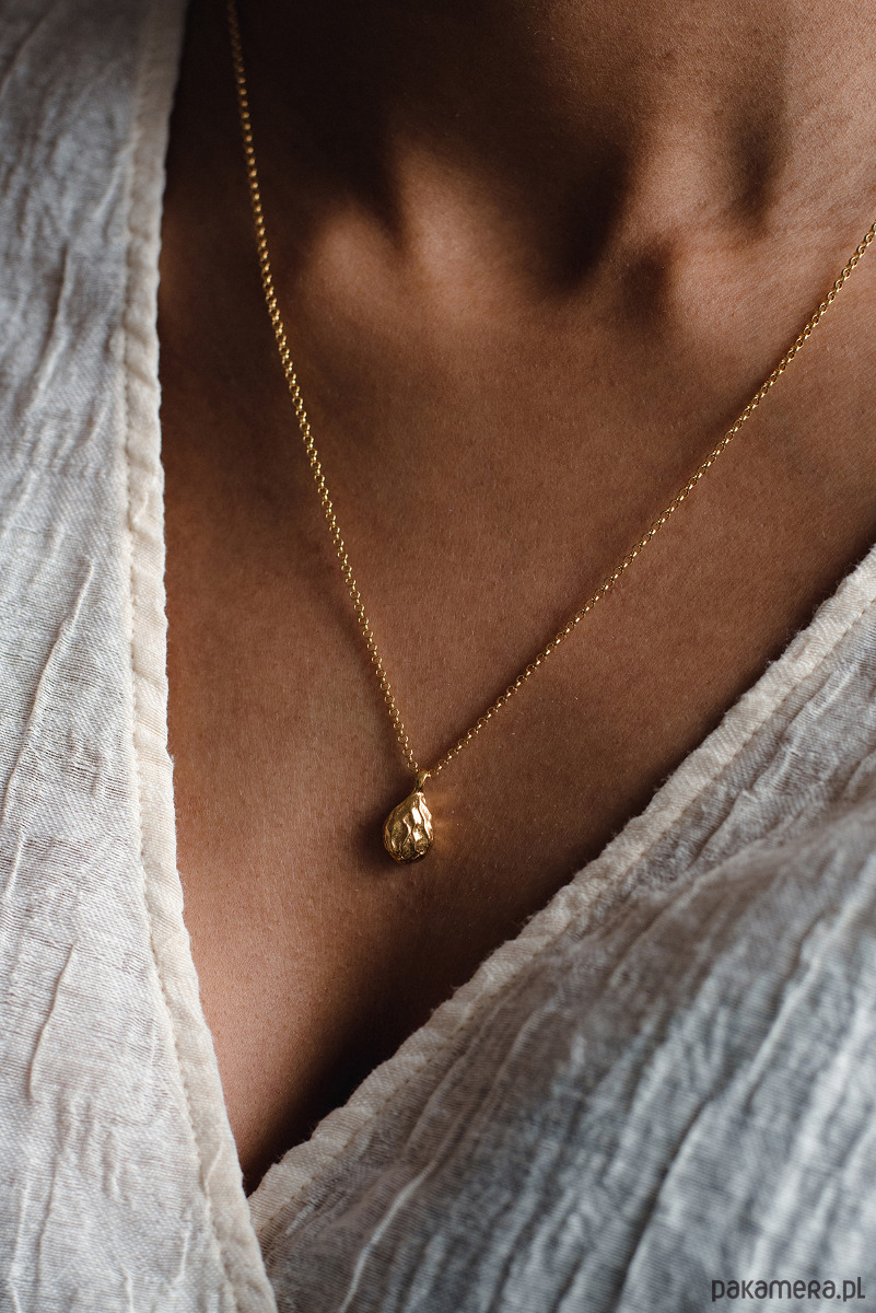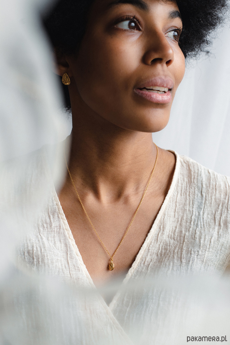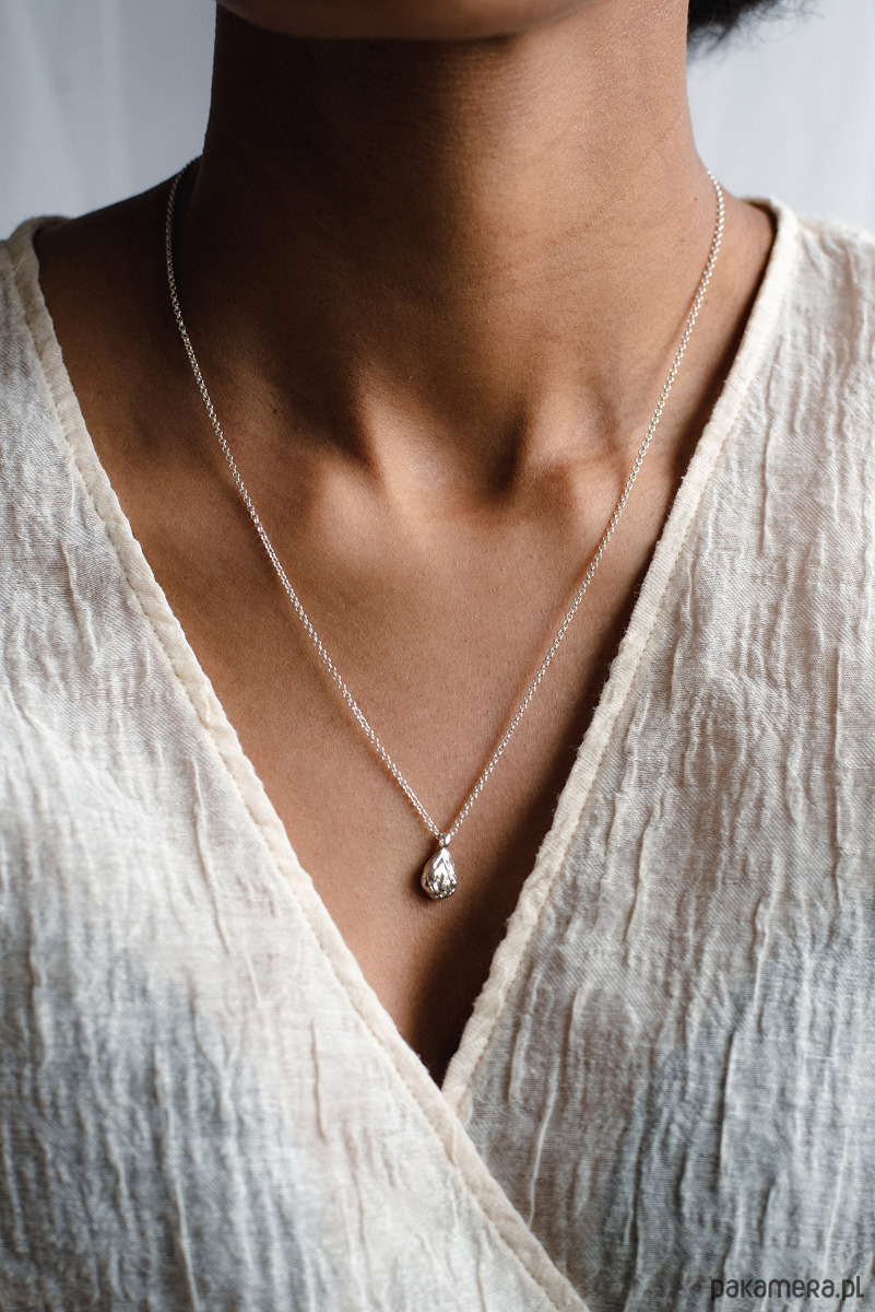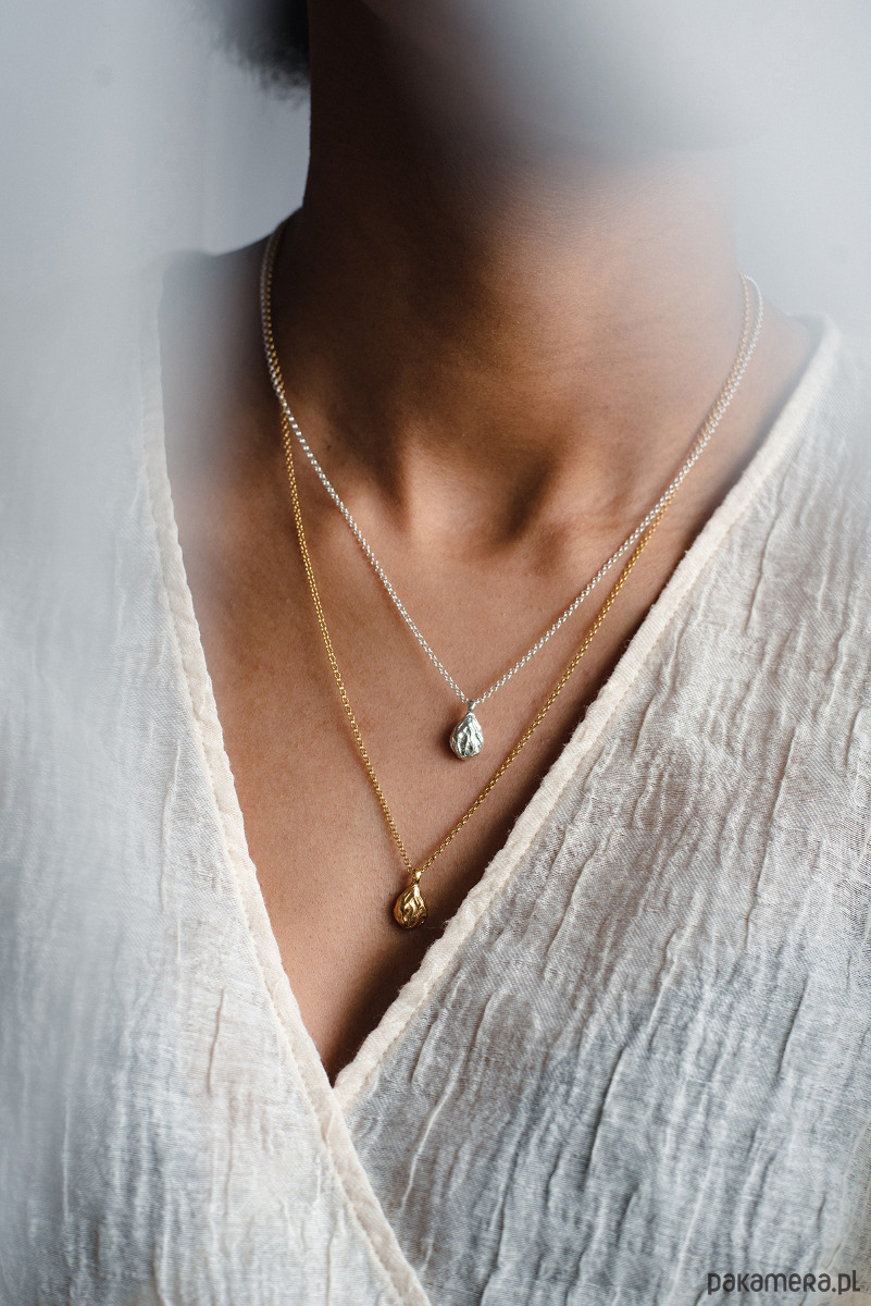 Zanurz się w subtelnej elegancji natury z Naszyjnikiem Kropla. Jej smukły, opływowy kształt inspirowany jest czystością kropli wody – symbolem harmonii i życia.