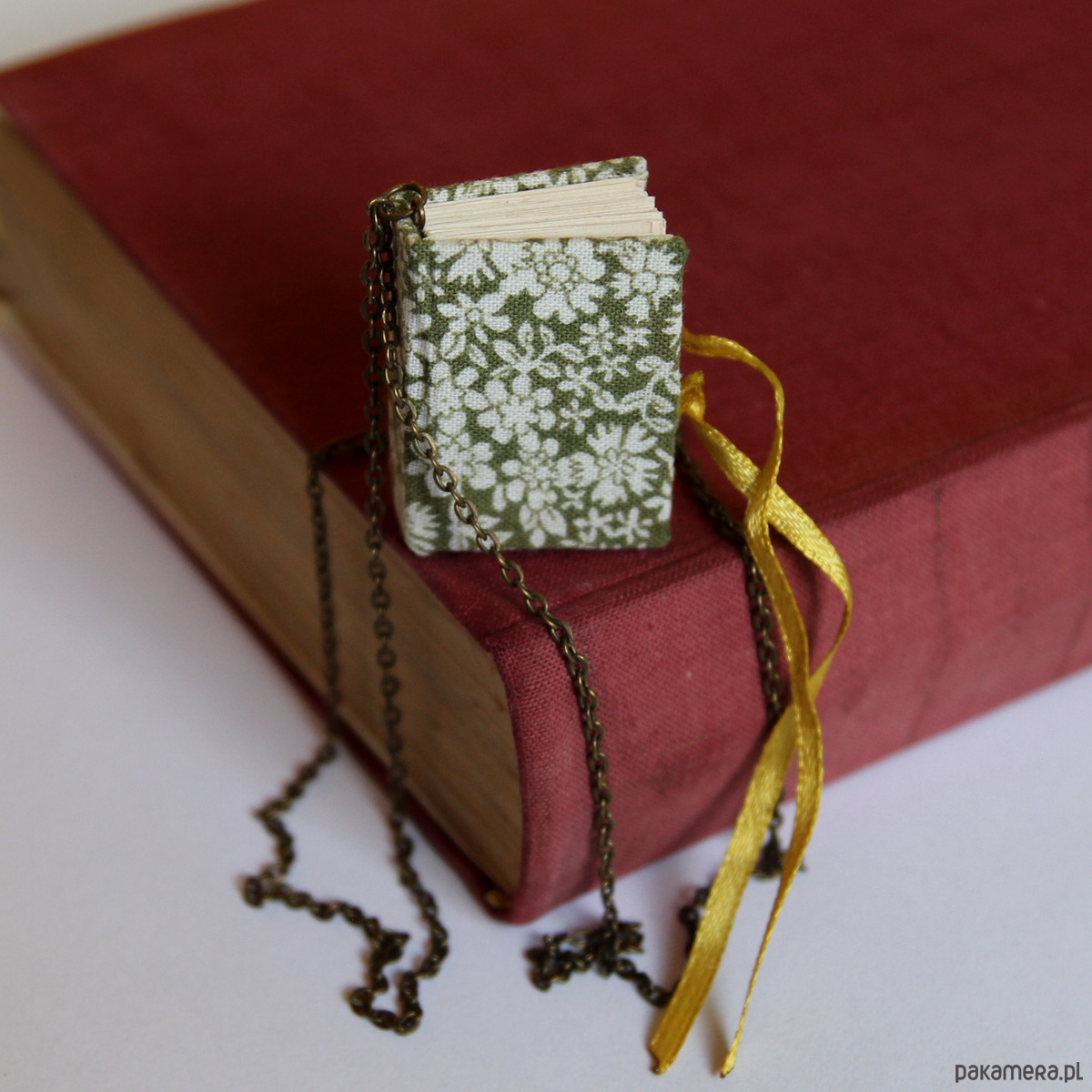 Naszyjnik z malutką książeczką wykonaną ręcznie.