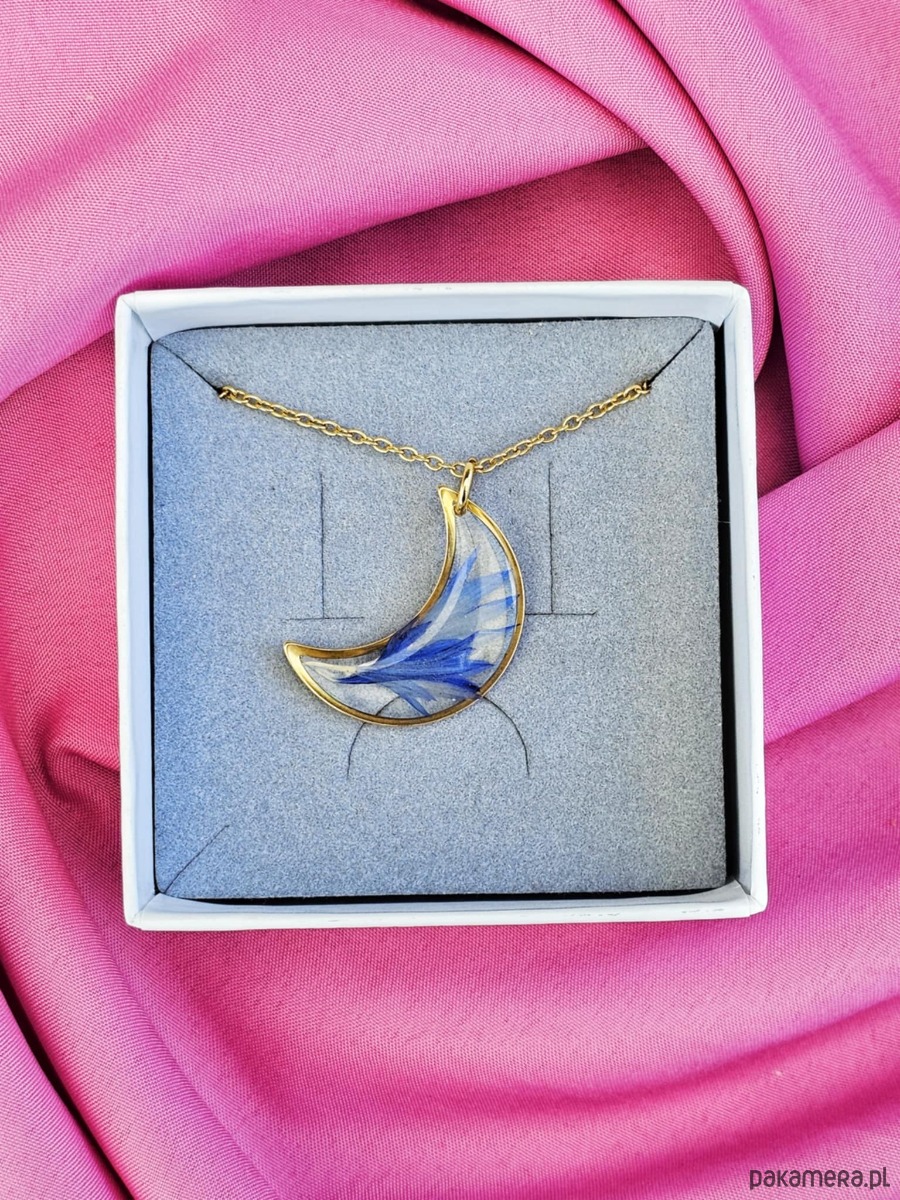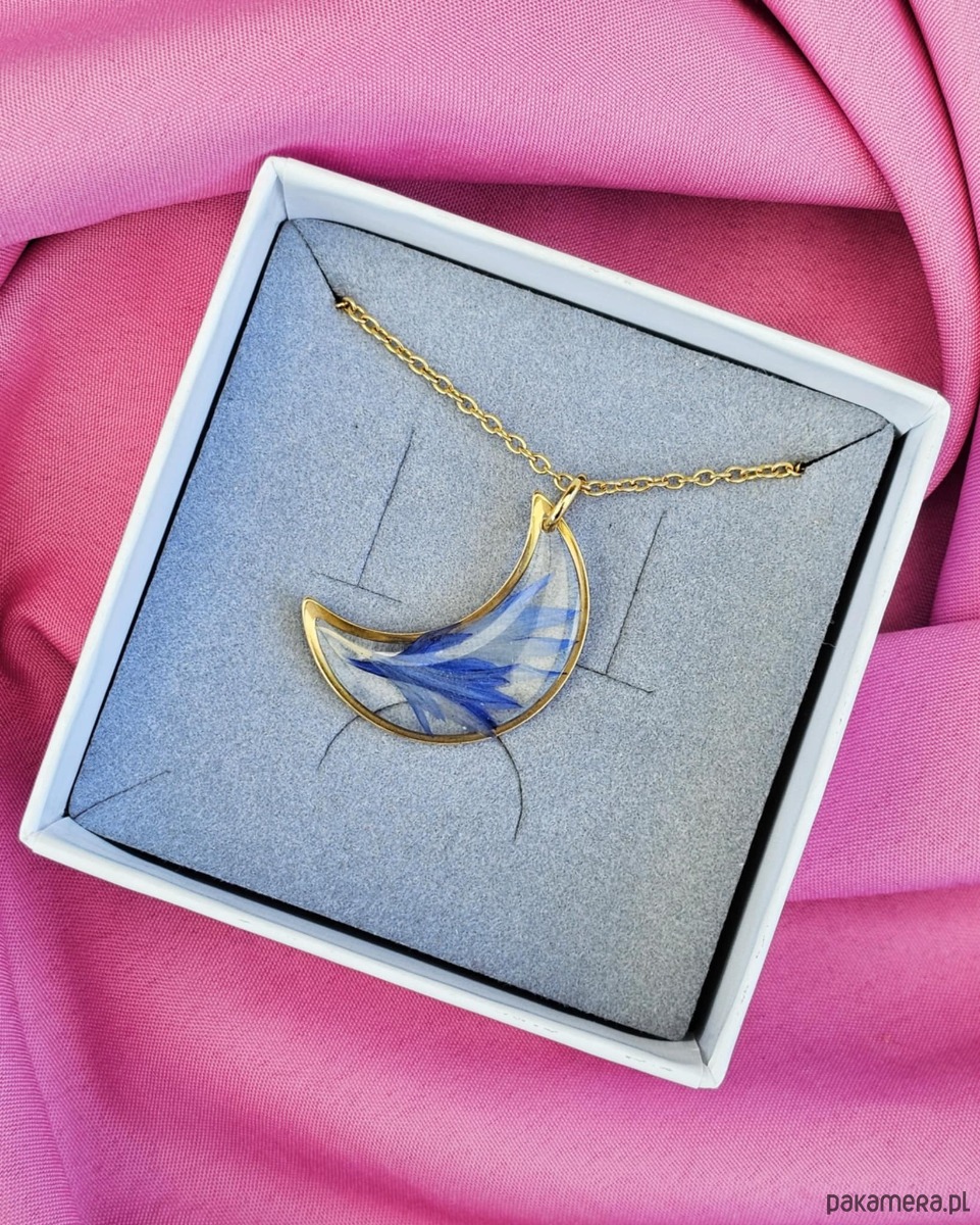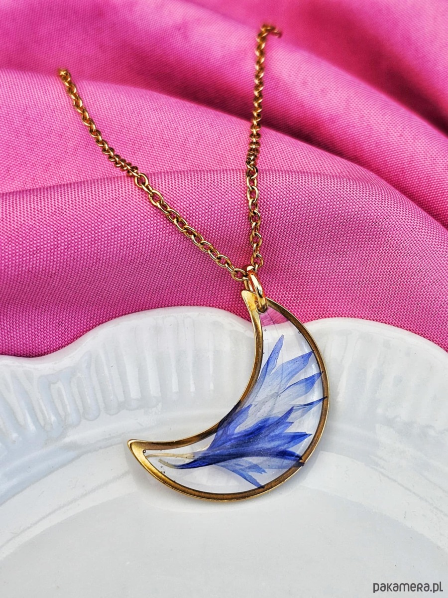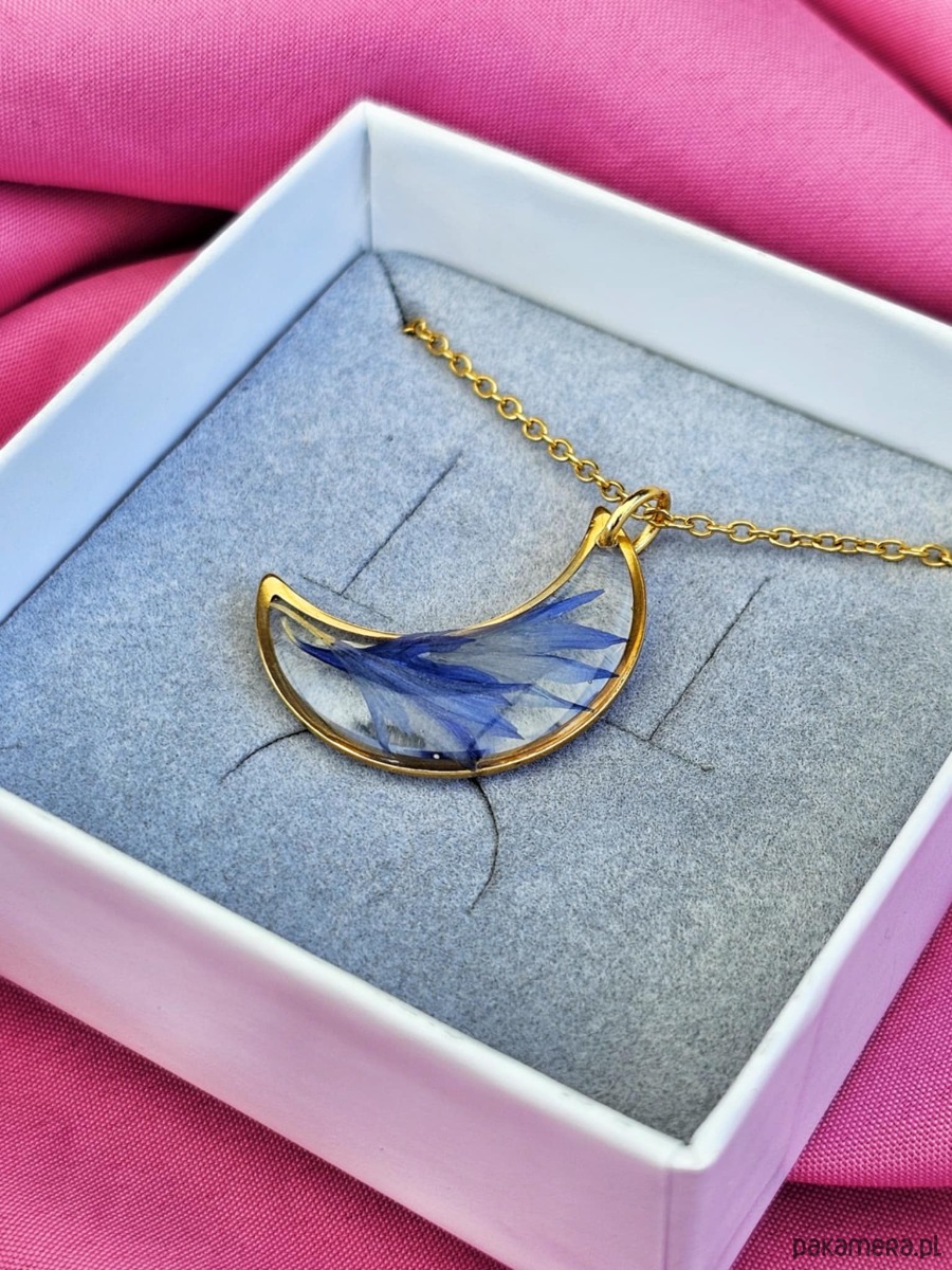 Naszyjnik z płatkami suszonego chabru to unikatowa, ręcznie wykonana biżuteria z serii Wolność.