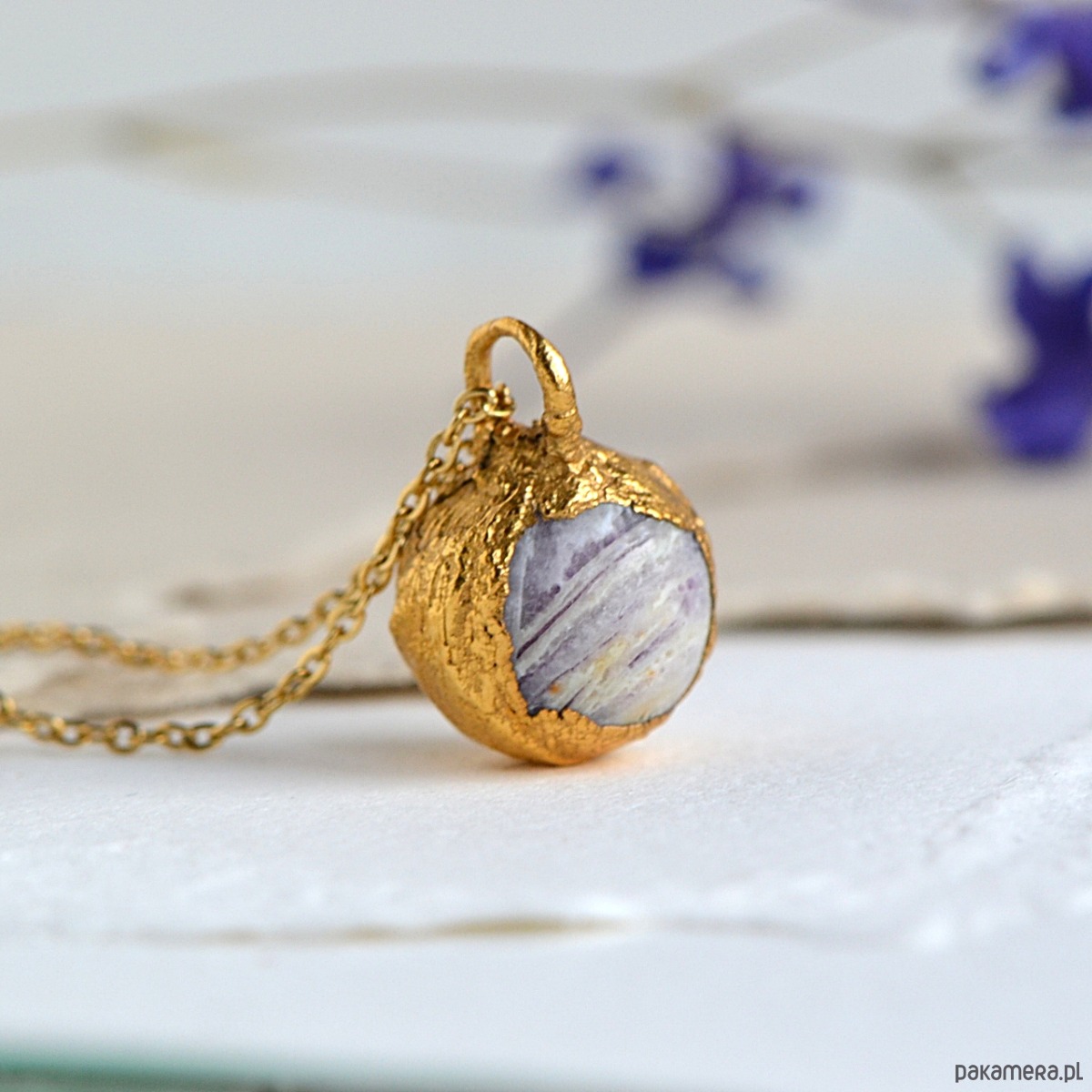 Większość moich prac powstaje podczas czasochłonnych procesów i prac ręcznych, w wyniku których każdy element jest nieco inny pod względem kształtu, rozmiaru, struktury lub koloru. Używam naturalnych kamieni i roślin, które również różnią się w przyrodzie. To sprawia to, że biżuteria jest wyjątkowa i jedyna w swoim rodzaju.