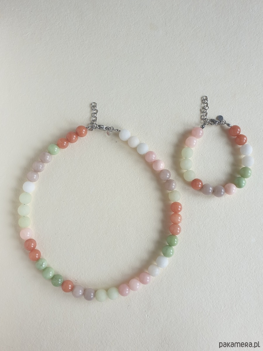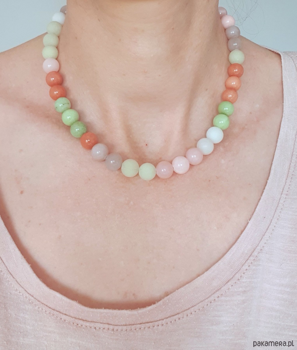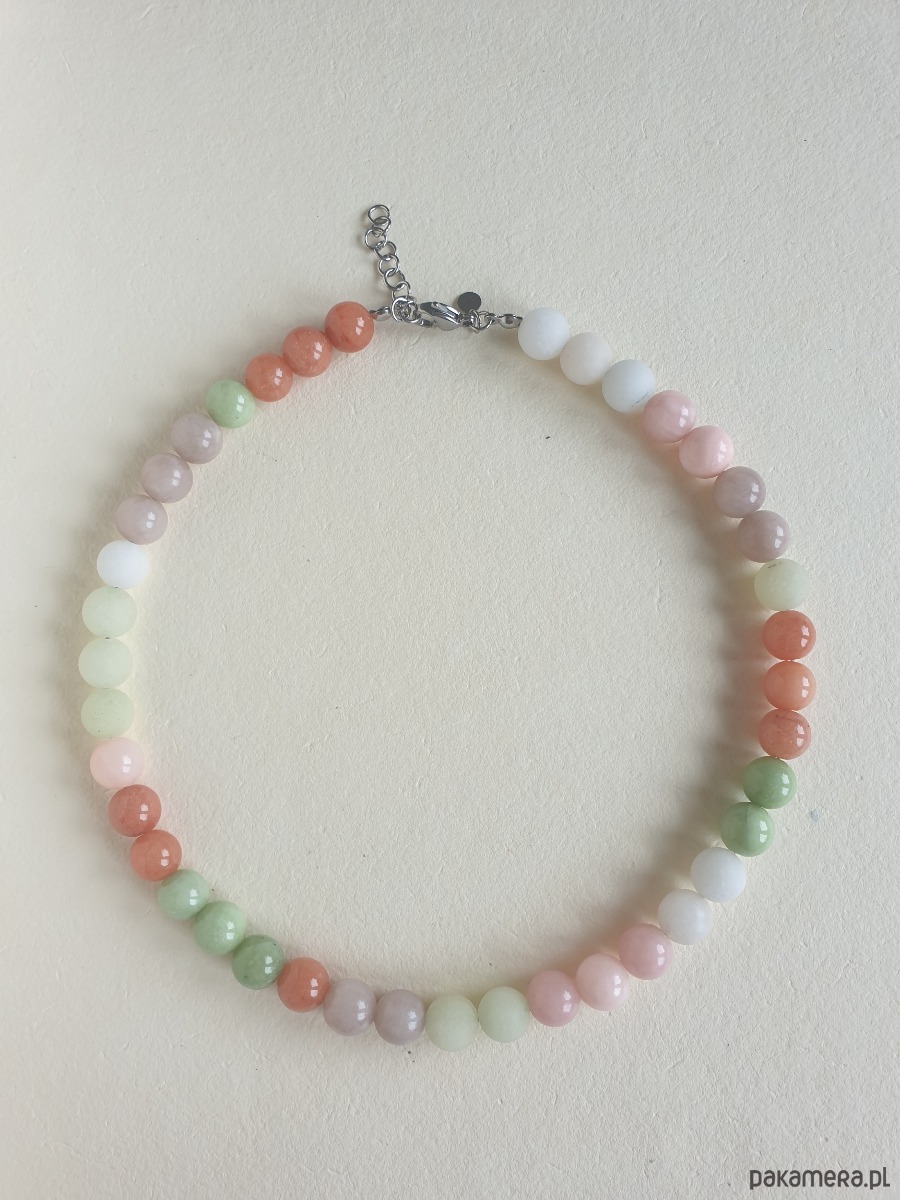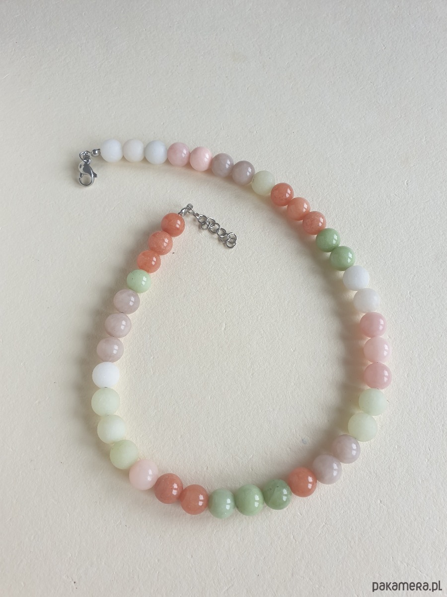 Minimalistyczny kulkowy naszyjnik choker z letniej kolekcji KULKI. Naszyjnik tworzony ręcznie z jadeitowych kulek, elementów ze stali szlachetnej (antyalergicznej). Do naszyjnika można dokupić bransoletkę.