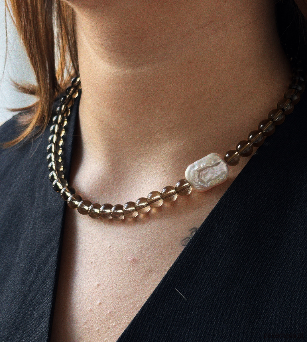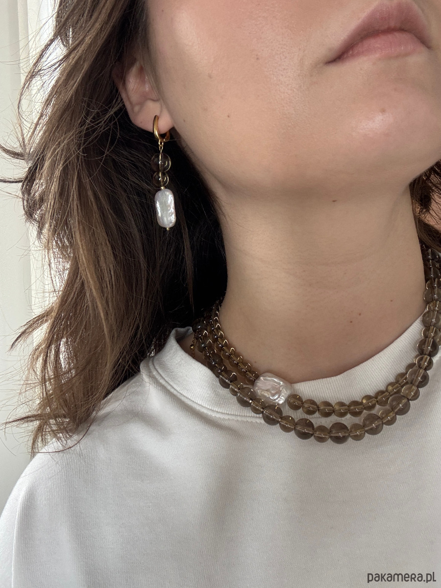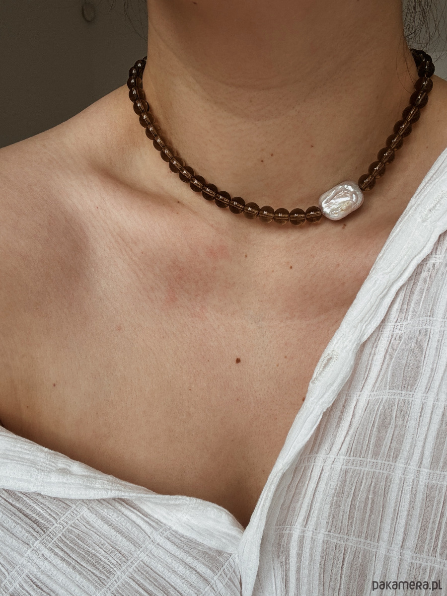 Naszyjnik Kwarc Dymny z perłą