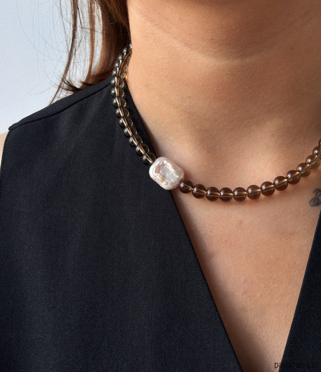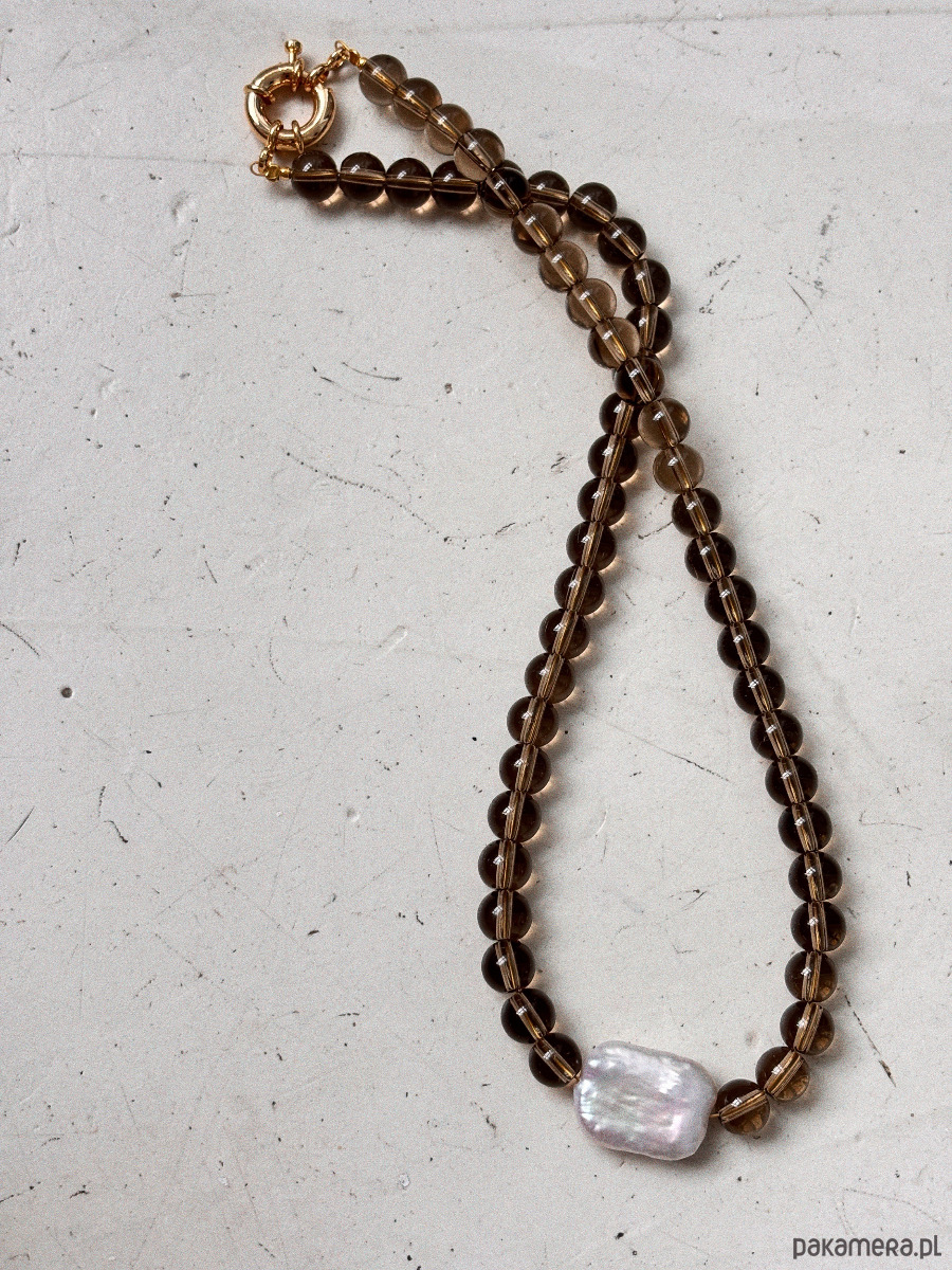 Naszyjnik Kwarc Dymny z perłą