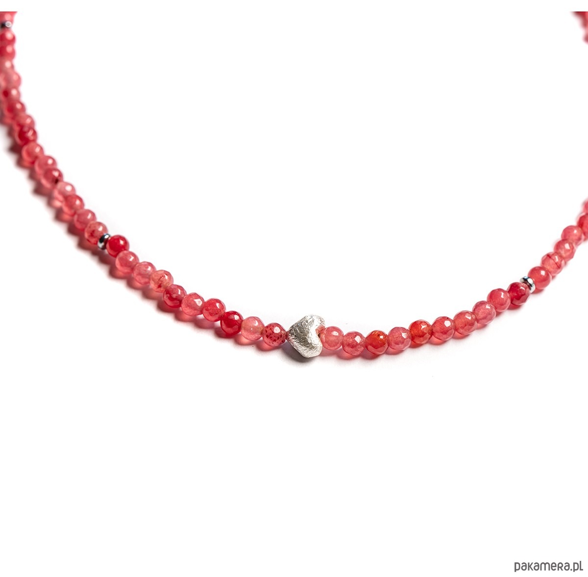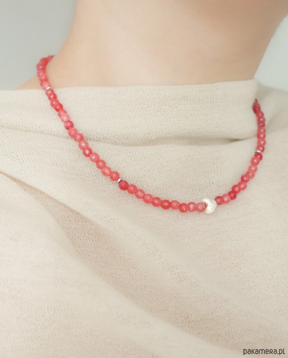 To naszyjnik dla tych, którzy kochają delikatność ale nie boją się wyrażać emocji. Wykonany z naturalnych kamieni kwarcu w kolorze malinowym, zestawionych ze srebrnym serduszkiem. Zakończony łańcuszkiem i klasycznym zapięciem ze srebra najwyższej próby - 925. Dzięki regulacji możesz dopasować długość naszyjnika do swoich potrzeb.