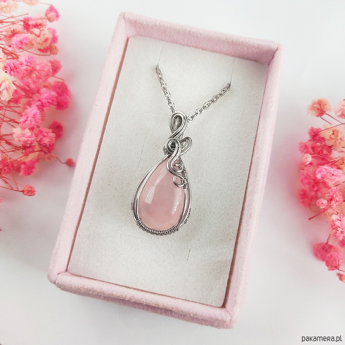 Naszyjnik Kwarc Różowy stal chirurgiczna wisiorek handmade wirewrapping