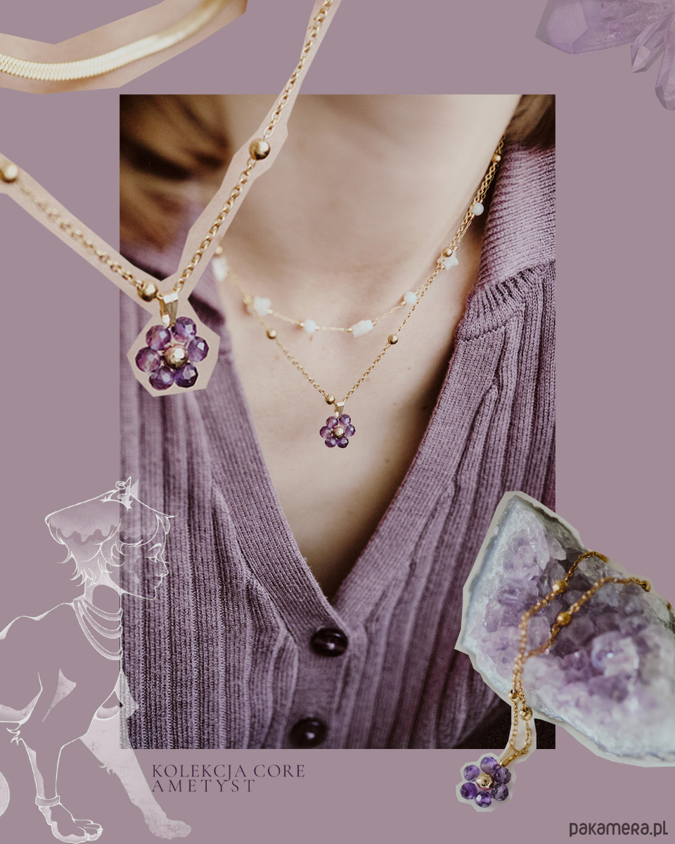 Naszyjnik kwiat, ametyst, kolekcja CORE