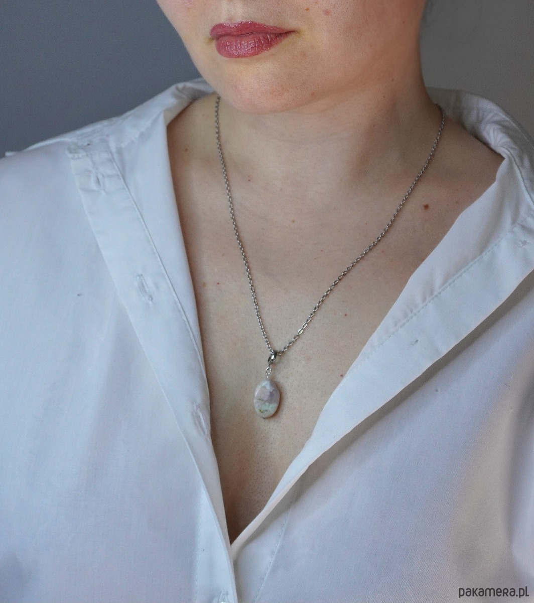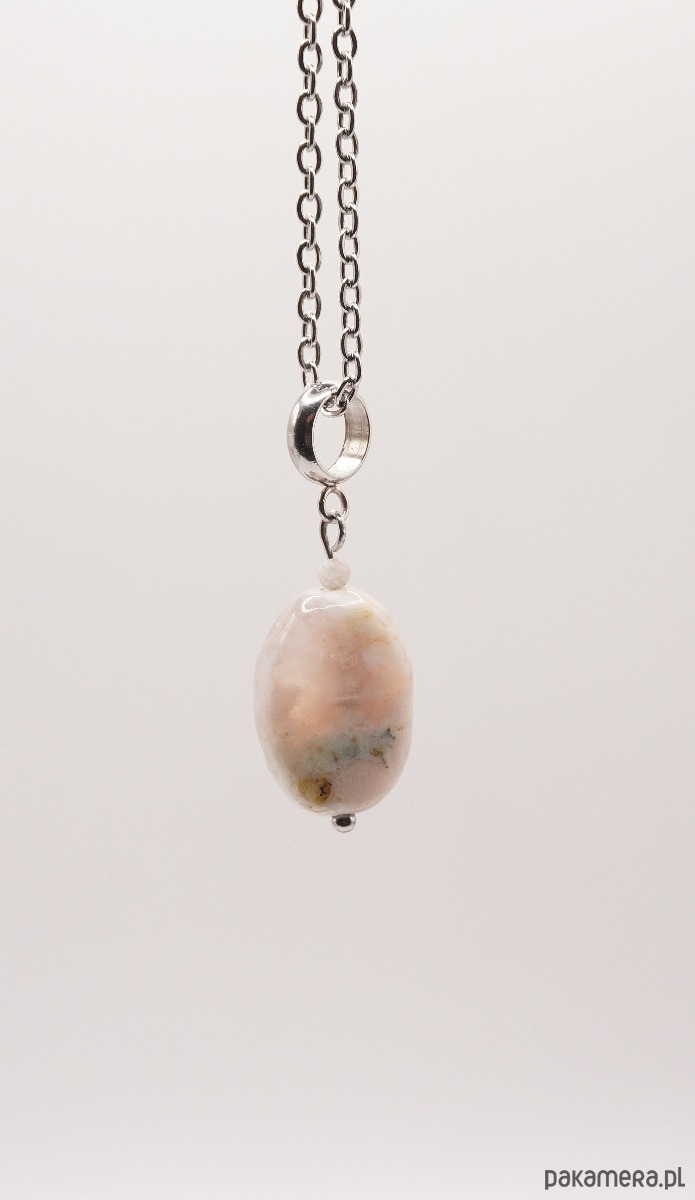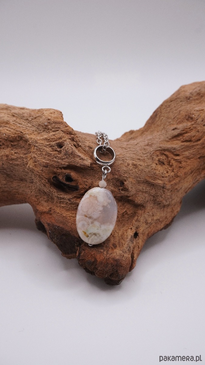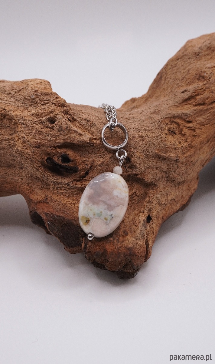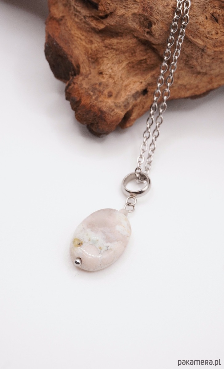 Subtelny naszyjnik wykonany z wysokiej jakości stali szlachetnej, ozdobiony wyjątkowym kamieniem – Agatem Sakura. To biżuteria, która łączy w sobie delikatność estetyczną z niezwykłą wytrzymałością materiałów.