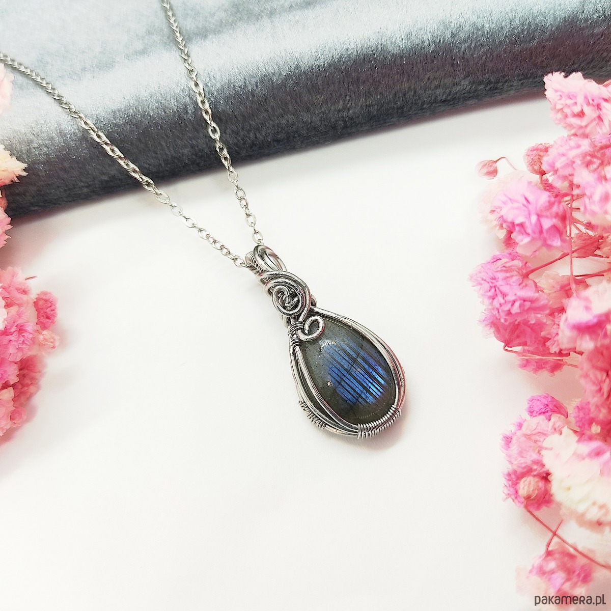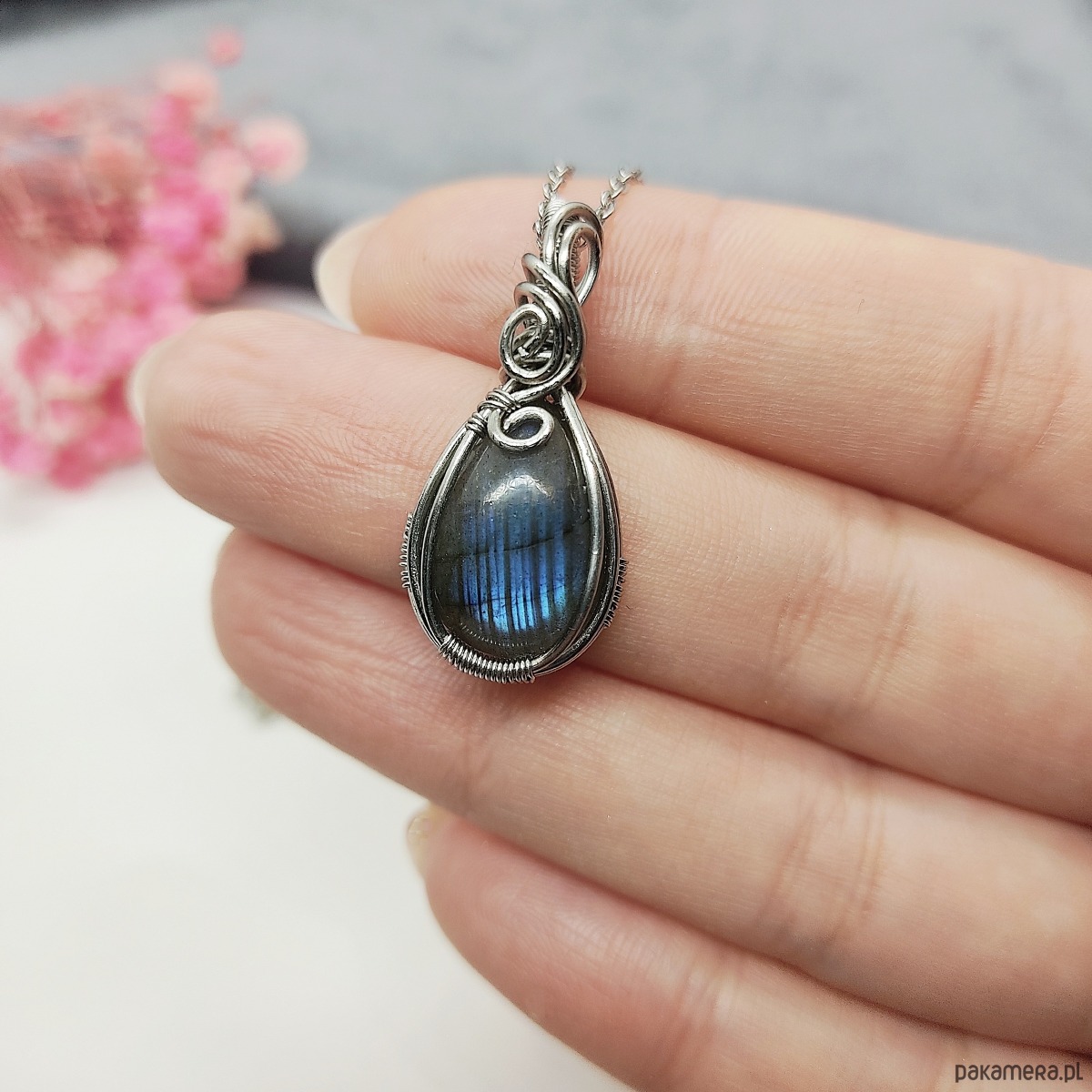 Naszyjnik Labradoryt Mini stal chirurgiczna wisiorek handmade wirewrapping