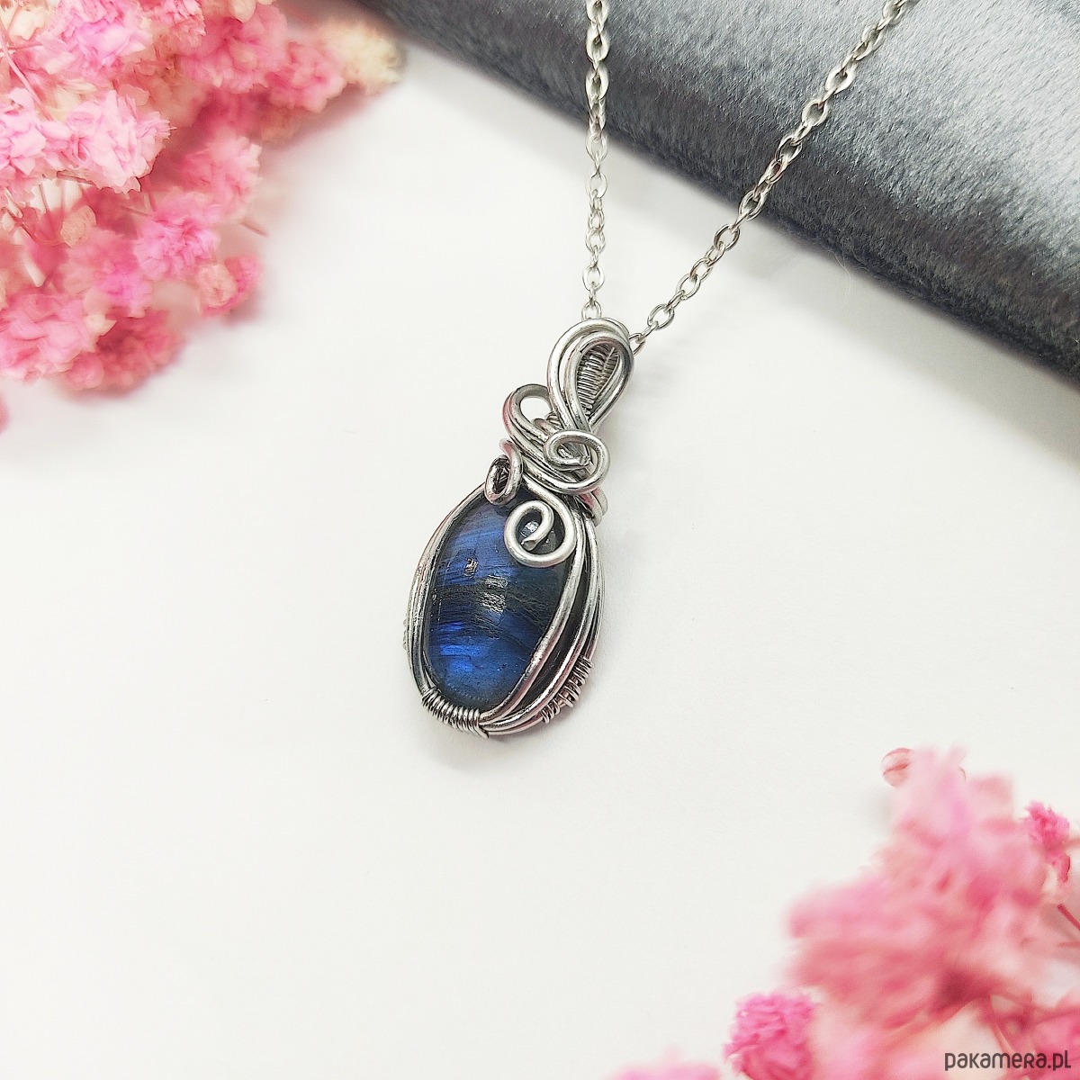 Naszyjnik Labradoryt Mini stal chirurgiczna wisiorek handmade wirewrapping