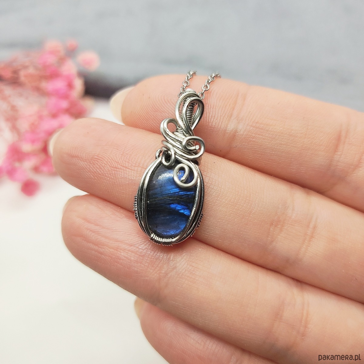 Naszyjnik Labradoryt Mini ręcznie robiony. Wykonany techniką wire wrapping z drutów ze stali chirurgicznej.