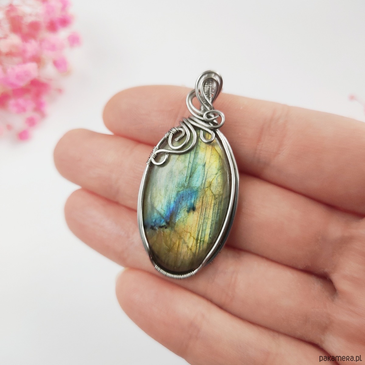 Naszyjnik Labradoryt Owal stal chirurgiczna wisiorek handmade wirewrapping
