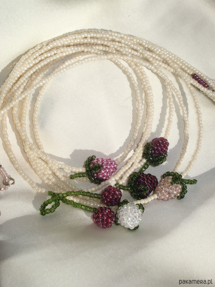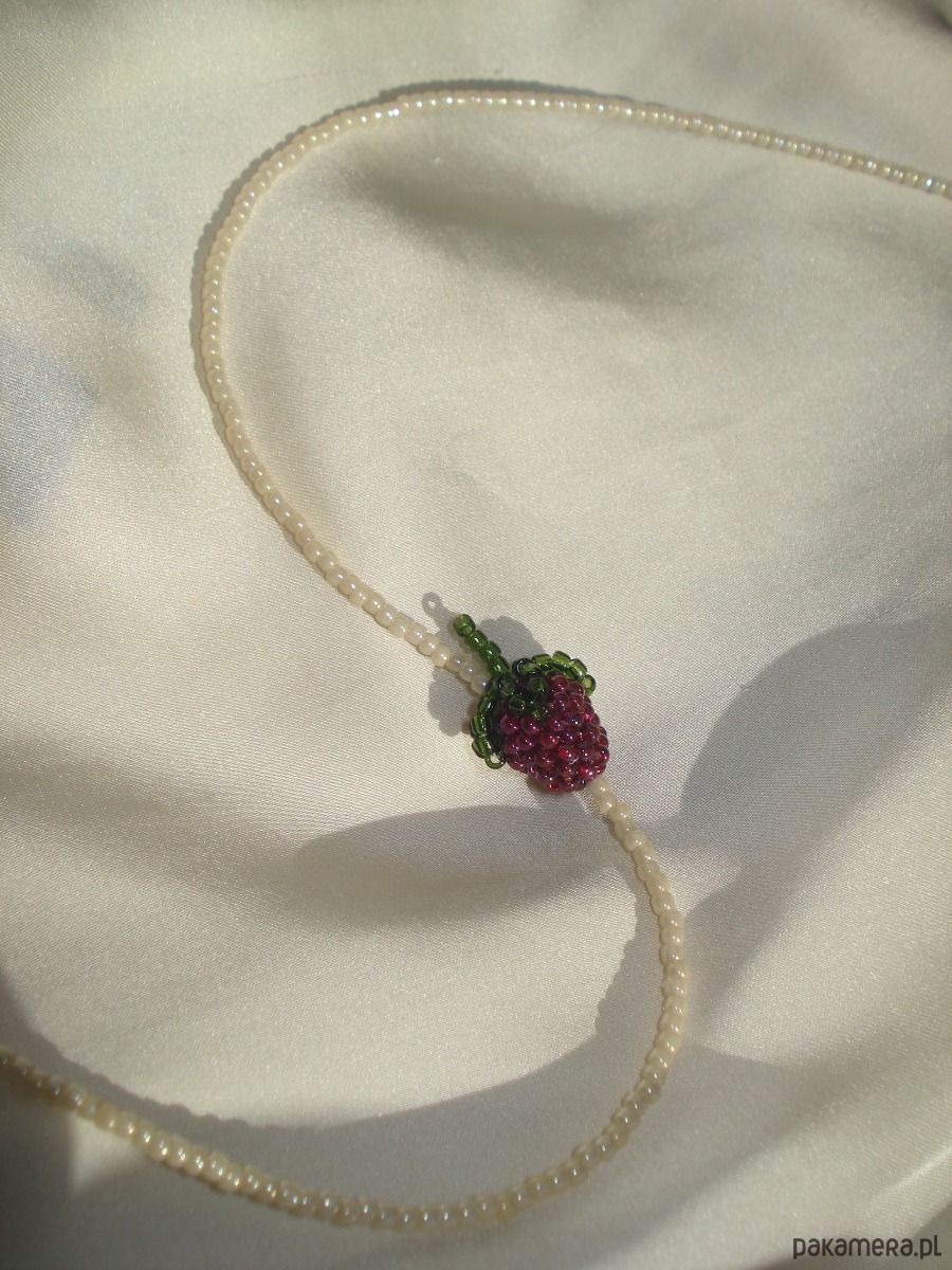 Owoce są ręcznie szyte z najwyższej jakości japońskich, szklanych koralików.