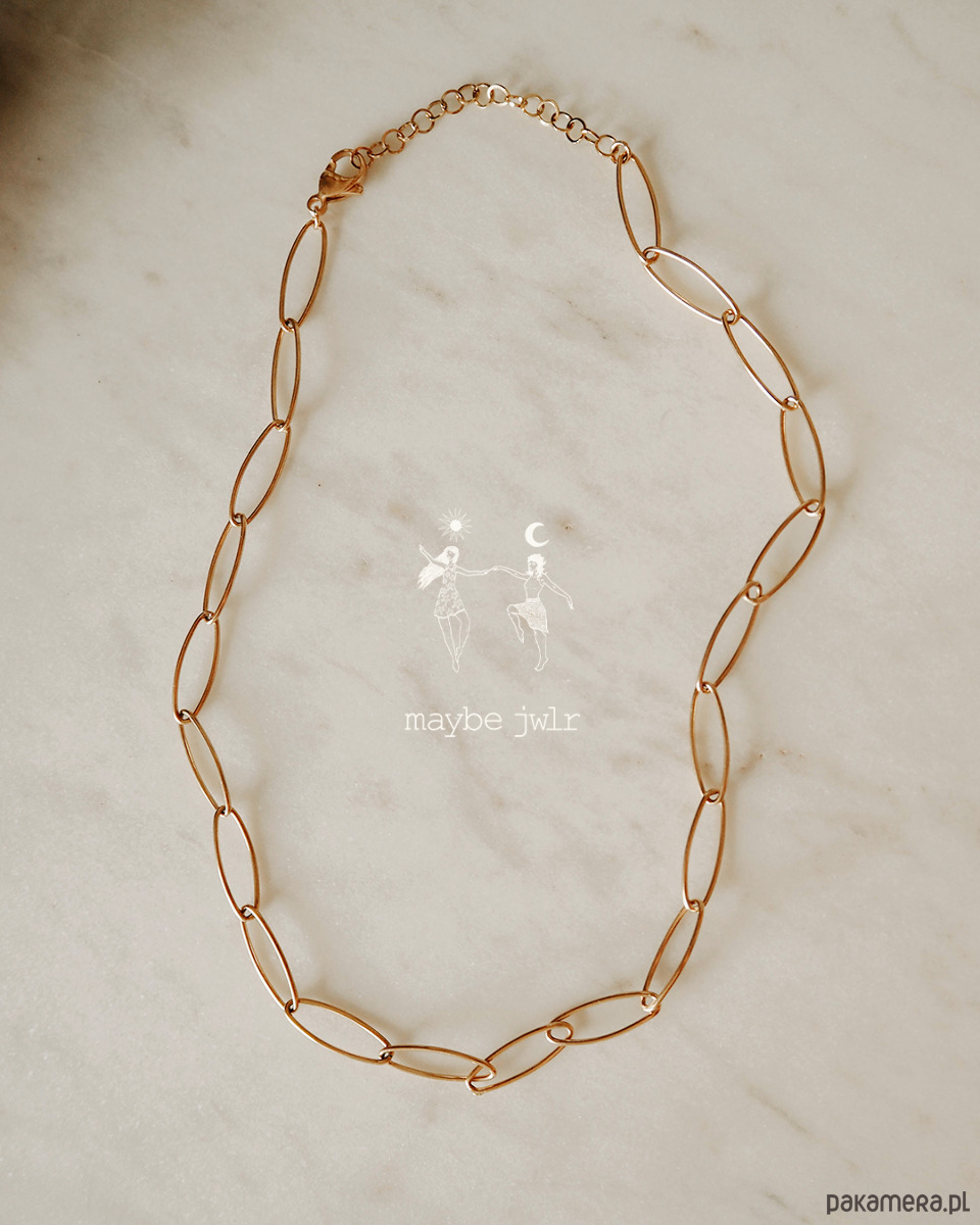 Długość łańcuszka to 39 cm + 5 cm regulacji, więc łatwo dopasujesz go do ulubionych dekoltów albo zestawisz z innymi naszyjnikami w stylu layering.