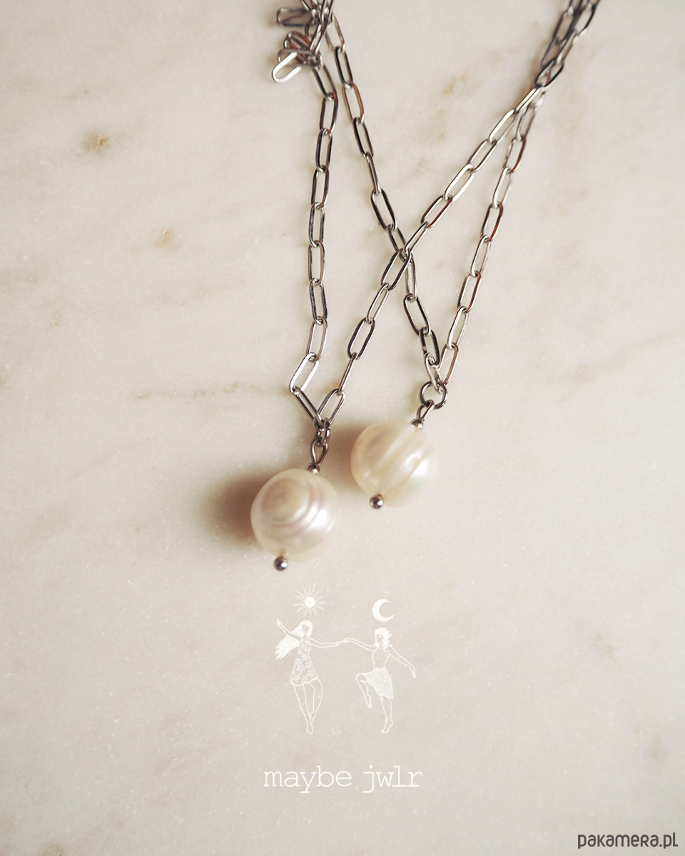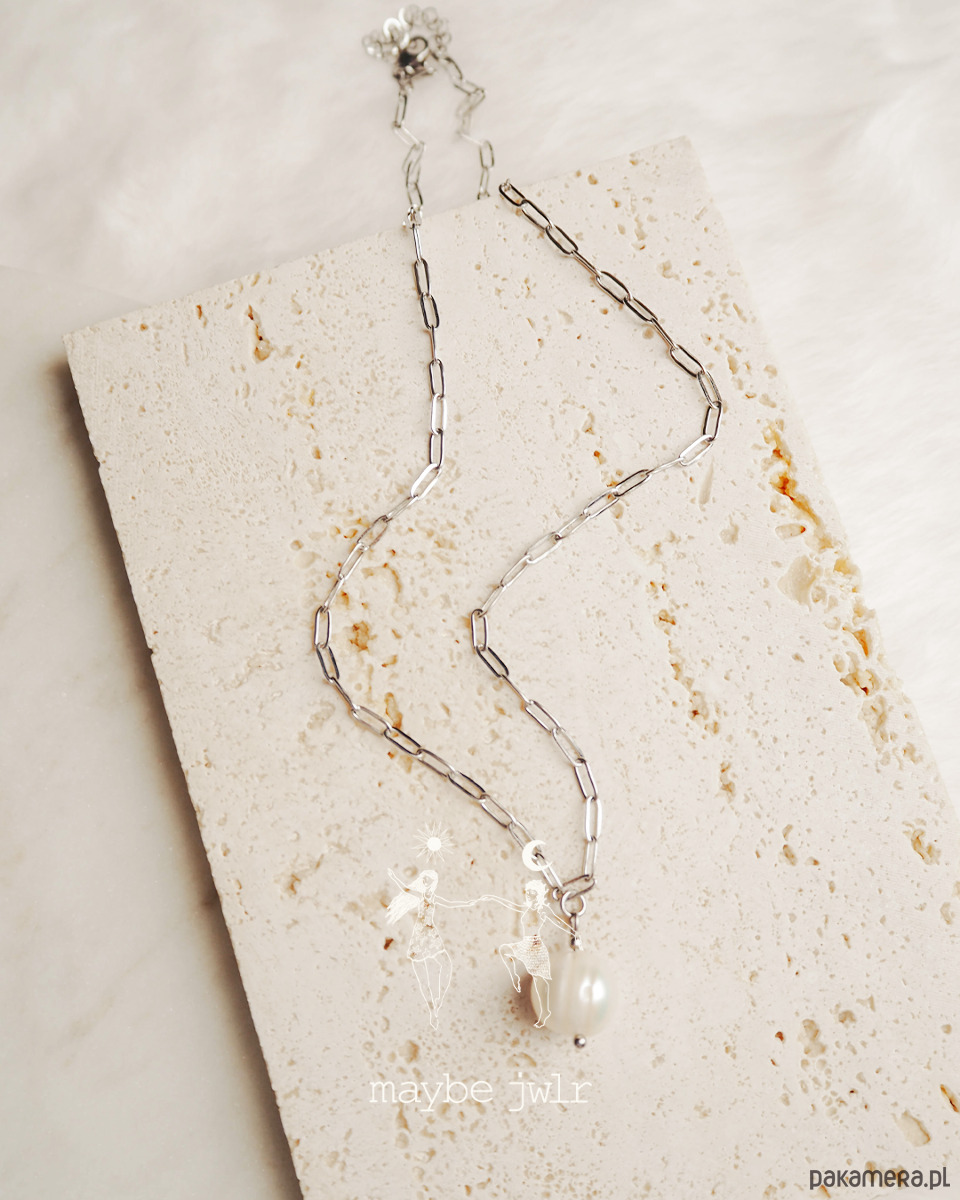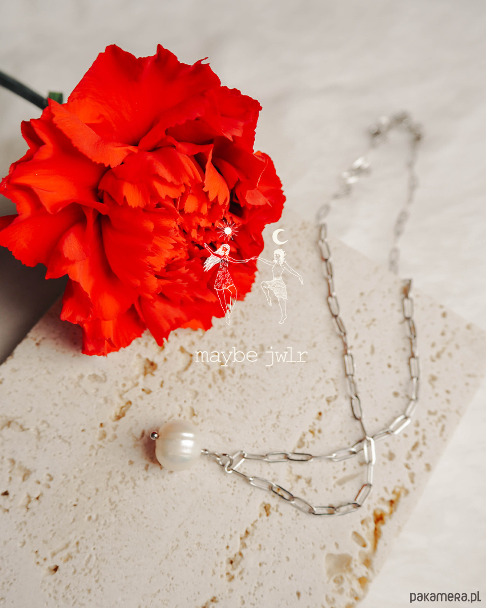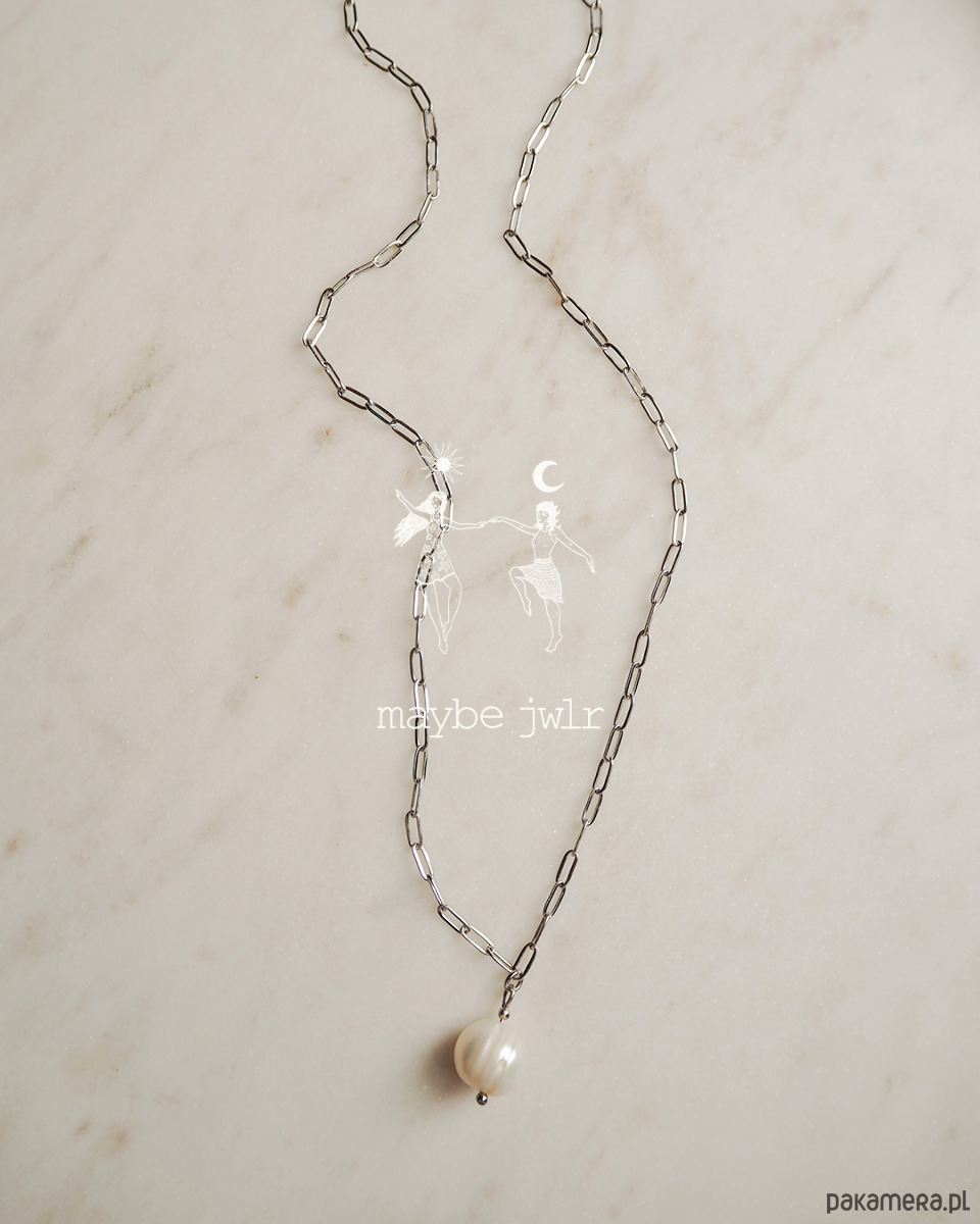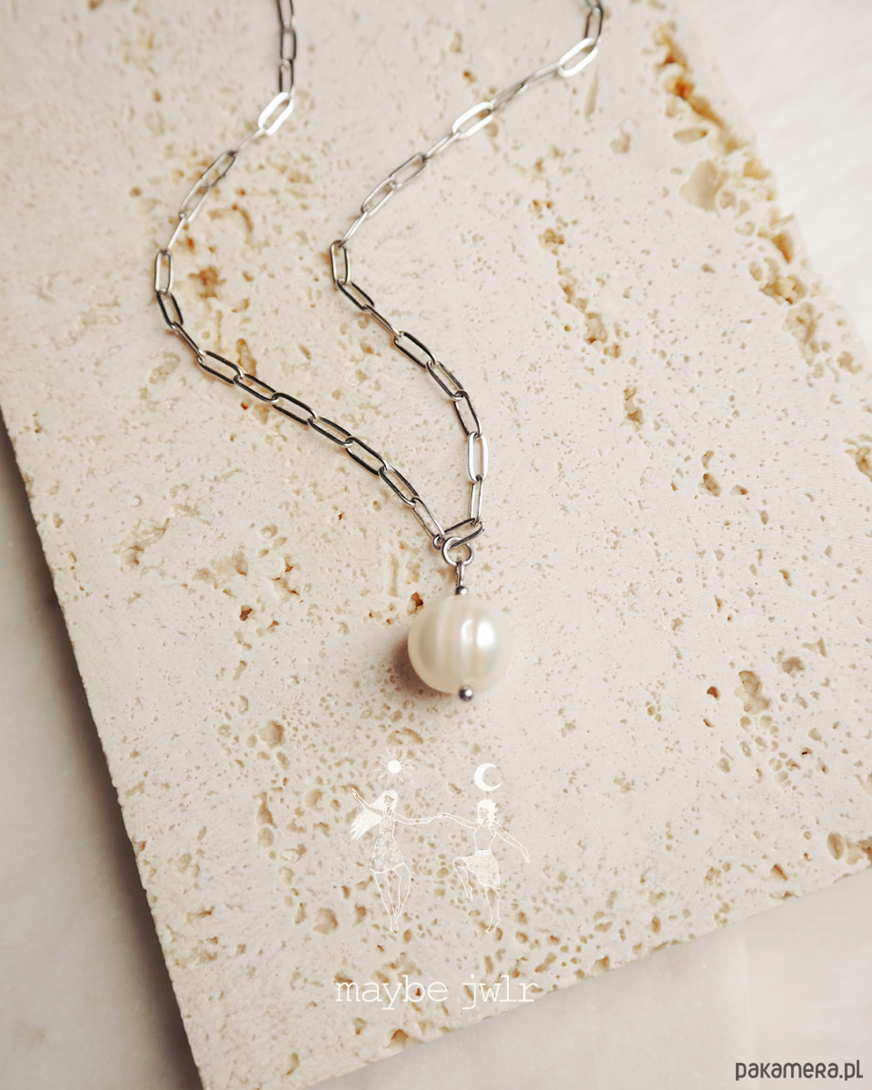 Naszyjnik Łańcuch srebrny spinacz z perłą