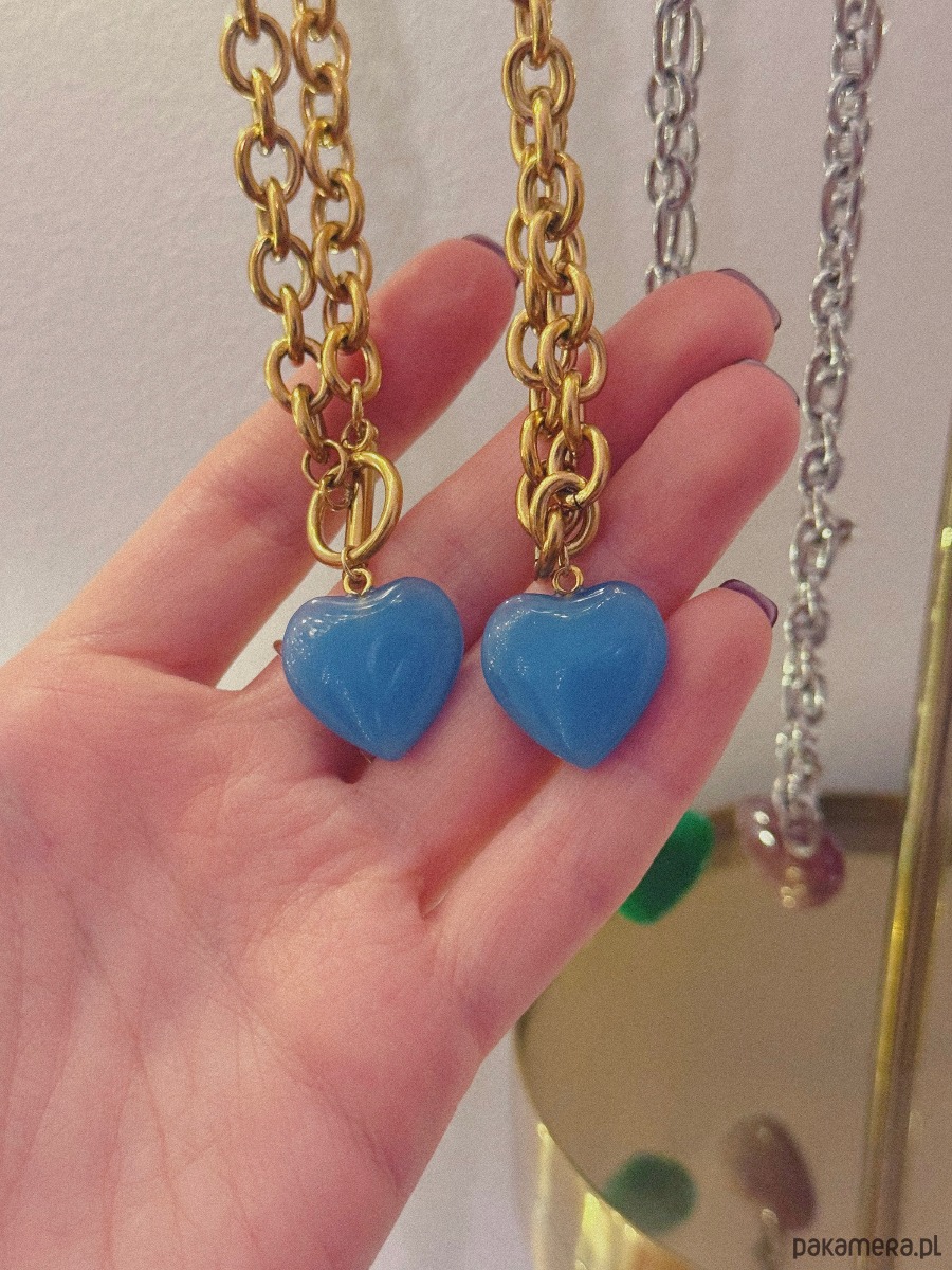 Zawieszka w kształcie serca wykonana z naturalnego akwamarynu to prawdziwa ozdoba naszyjnika. Akwamaryn, symbolizujący spokój, harmonię i czystość, nadaje całej biżuterii wyjątkowego, delikatnego charakteru. Jego chłodny, błękitny odcień wspaniale kontrastuje z ciepłym złoceniem stali, tworząc elegancką i wyważoną kompozycję.