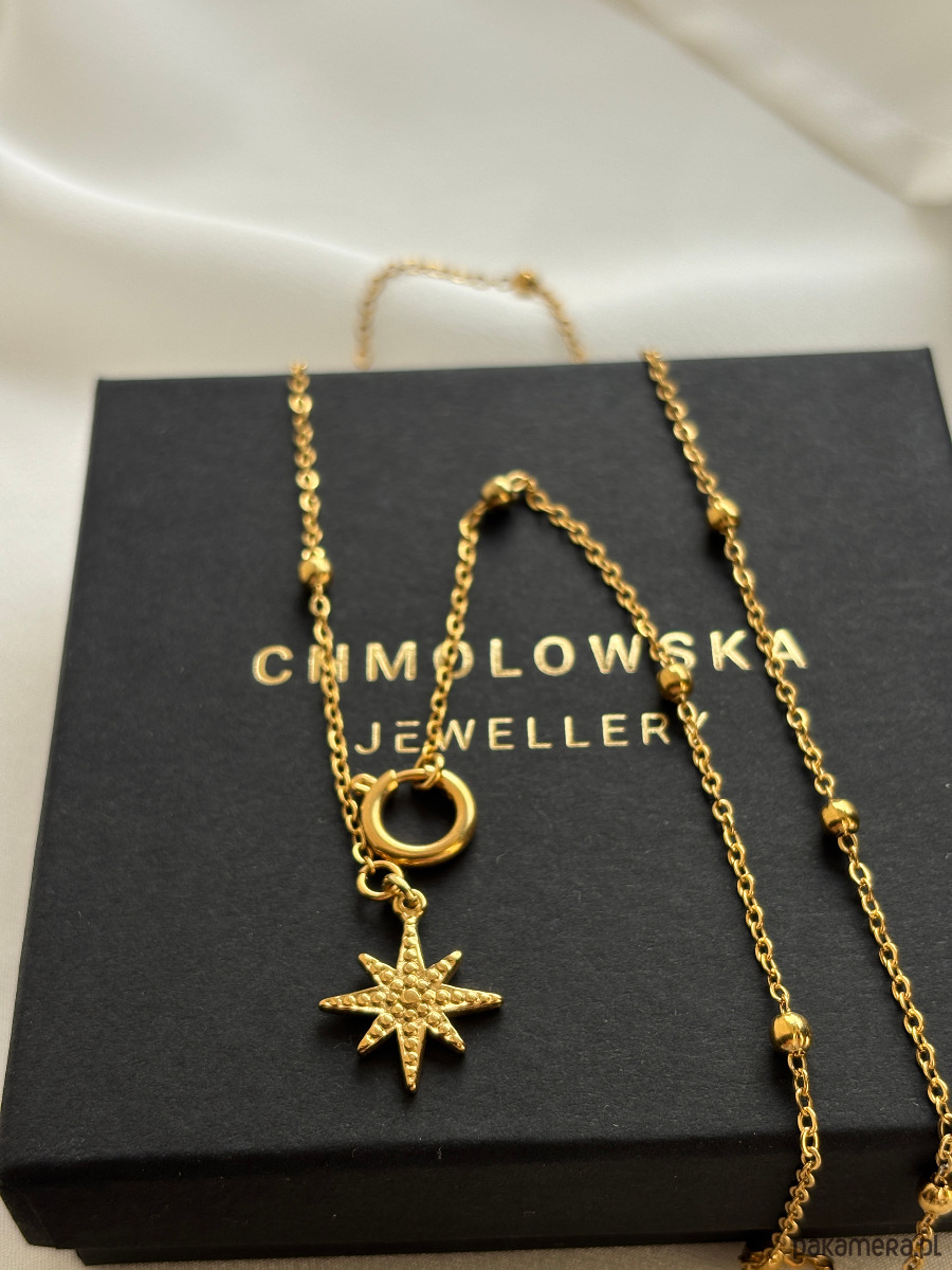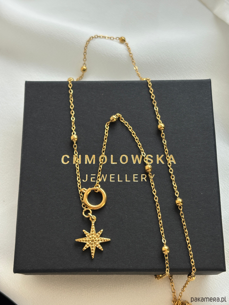 Naszyjnik wykonany jest łańcuszka, zapięcia i zawieszki ze stali ch.