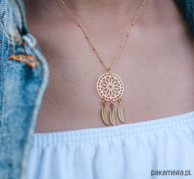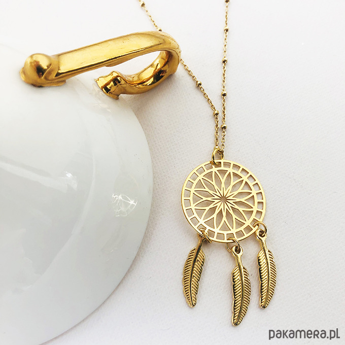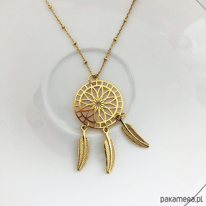 Naszyjnik łapacz snów , złote pióra, naszyjnik boho