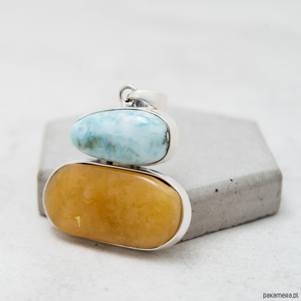 • Unikatowy wzór – każdy bursztyn i larimar mają niepowtarzalną strukturę i barwę