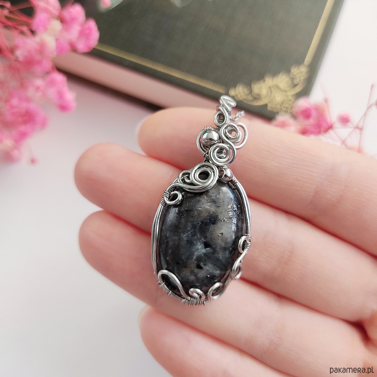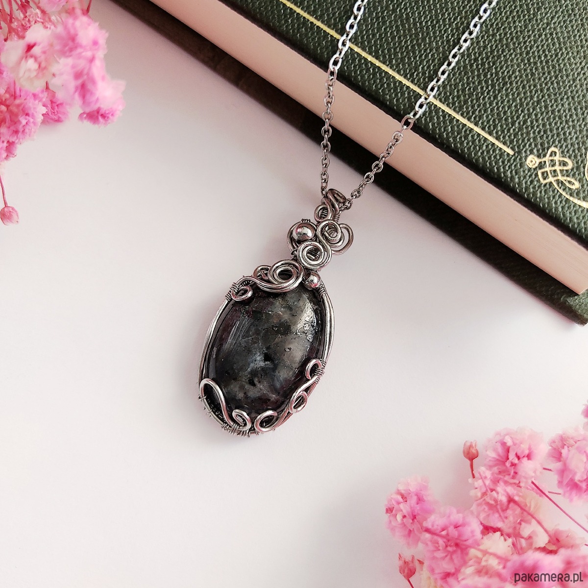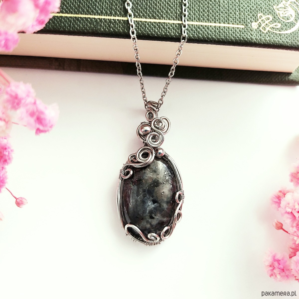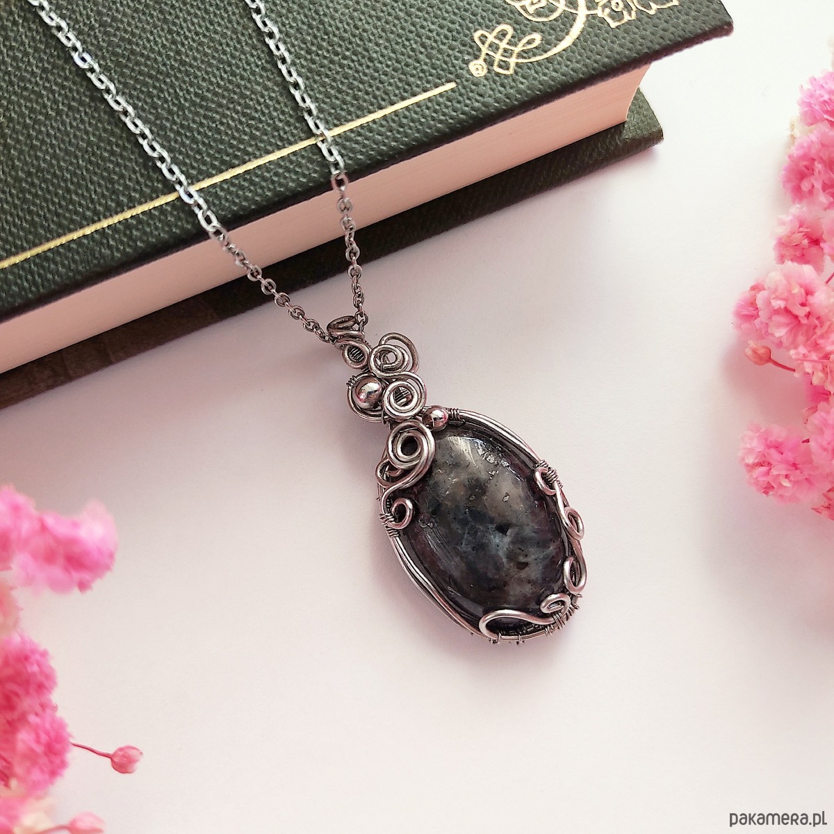 Naszyjnik Larvikit stal chirurgiczna wisiorek handmade wirewrapping