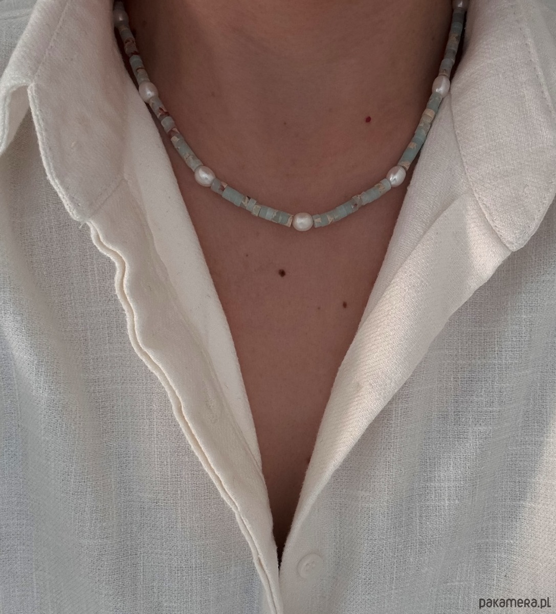 Choker wykonany z pereł i drobnych kamieni naturalnych o nazwie jaspis