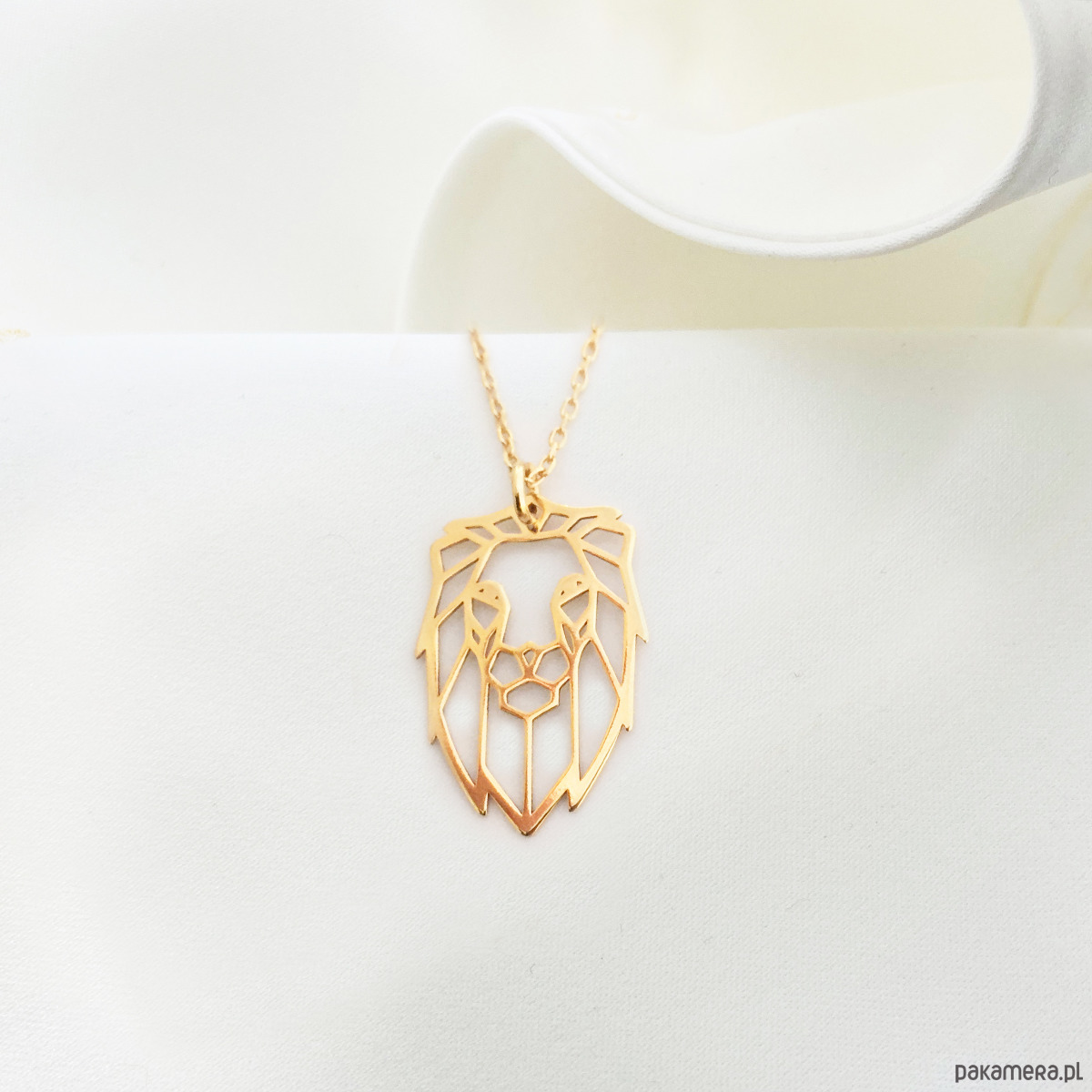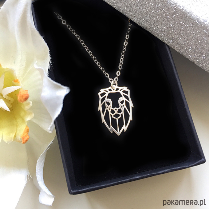 Piękny, wyjątkowy naszyjnik z zawieszką w kształcie głowy lwa, inspirowany sztuką origami – połączenie delikatności i odważnego, nowoczesnego designu.