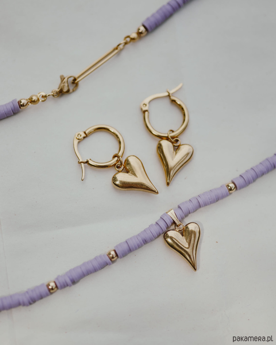 Biżuteria w pastelowych kolorach jest gorącym trendem już od kilku sezonów, idealna nie tylko na lato. Świetnie prezentuje się w zestawieniu z kolczykami w kształcie serc.
