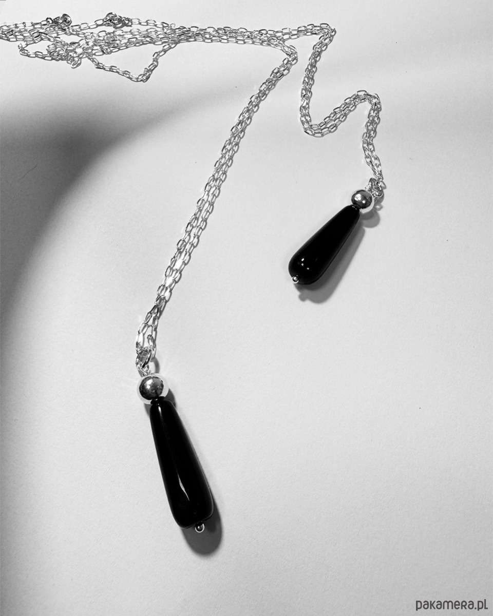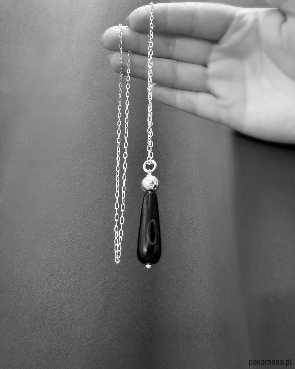 Naszyjnik Linn, to długi naszyjnik wykonany ze srebra pr. 925 oraz kamieniu Onyks w kształcie połyskującej kropli. Jego klasyczny elegancki kształt doda Ci charakteru. Naszyjnik unisex.