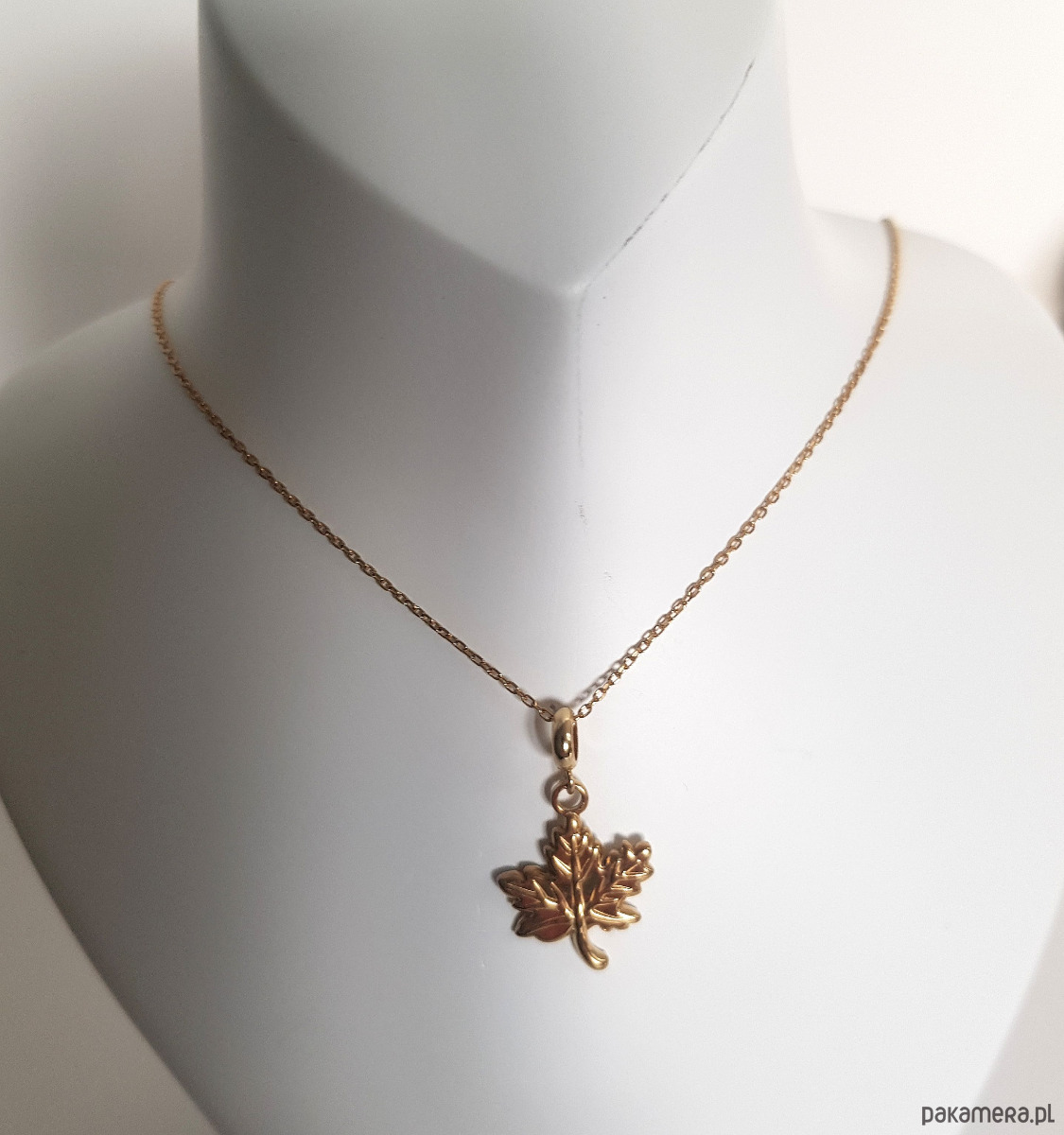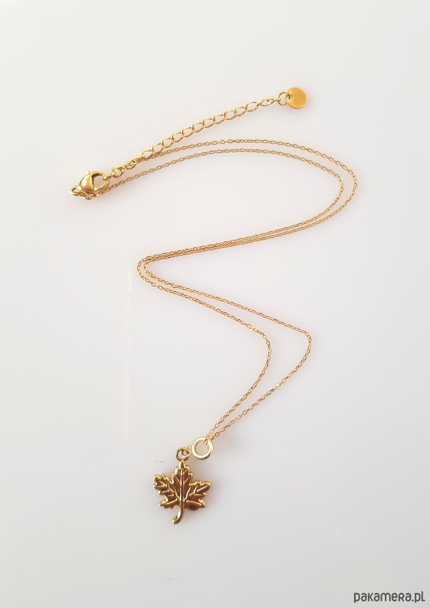 Elegancki, delikatny łańcuszek z liściem klonu.