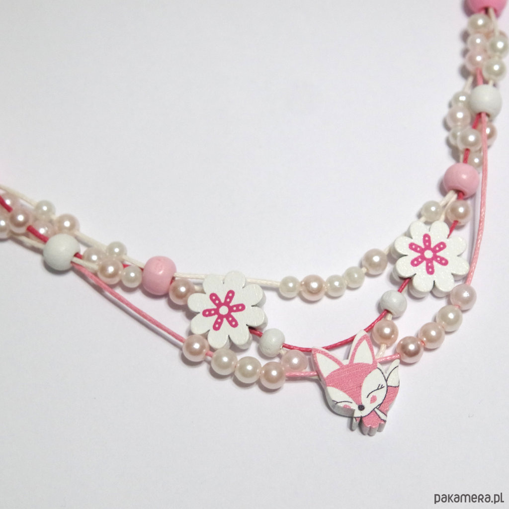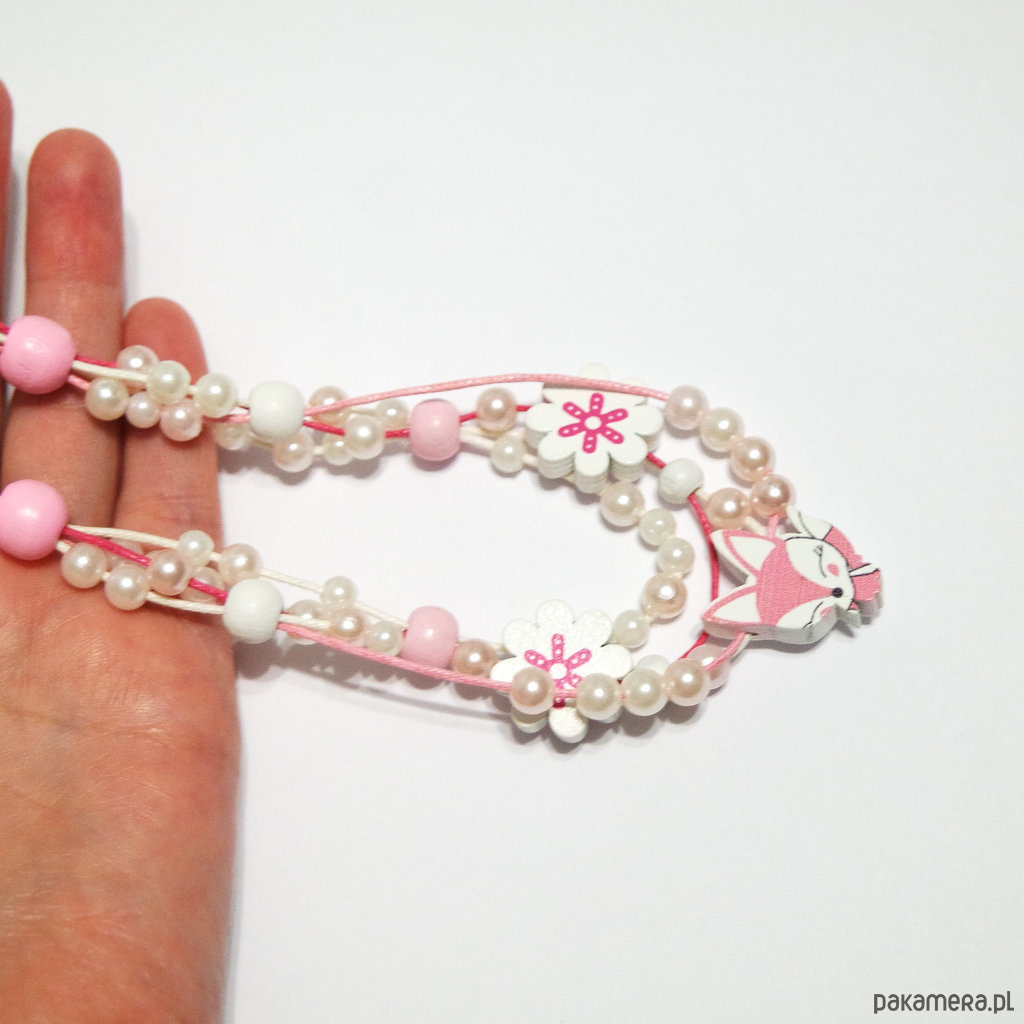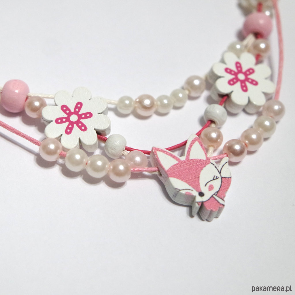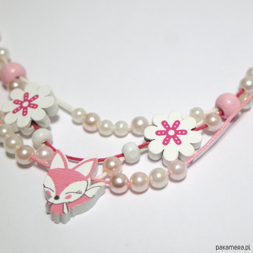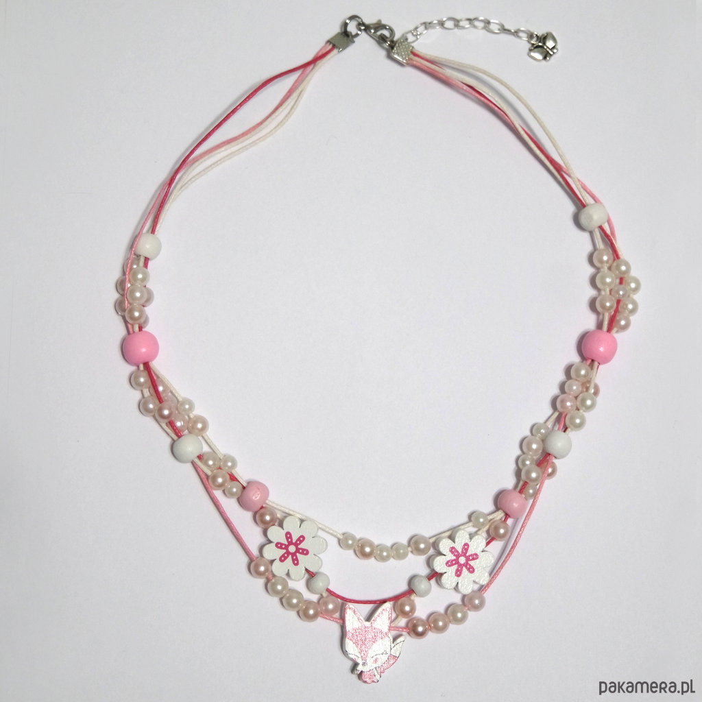 Naszyjnik - Lisek, kwiaty - sznureczki - dla dzieci