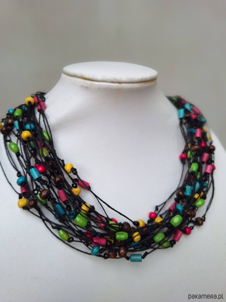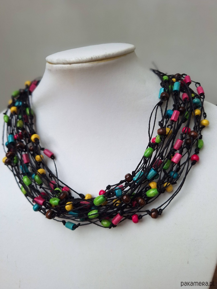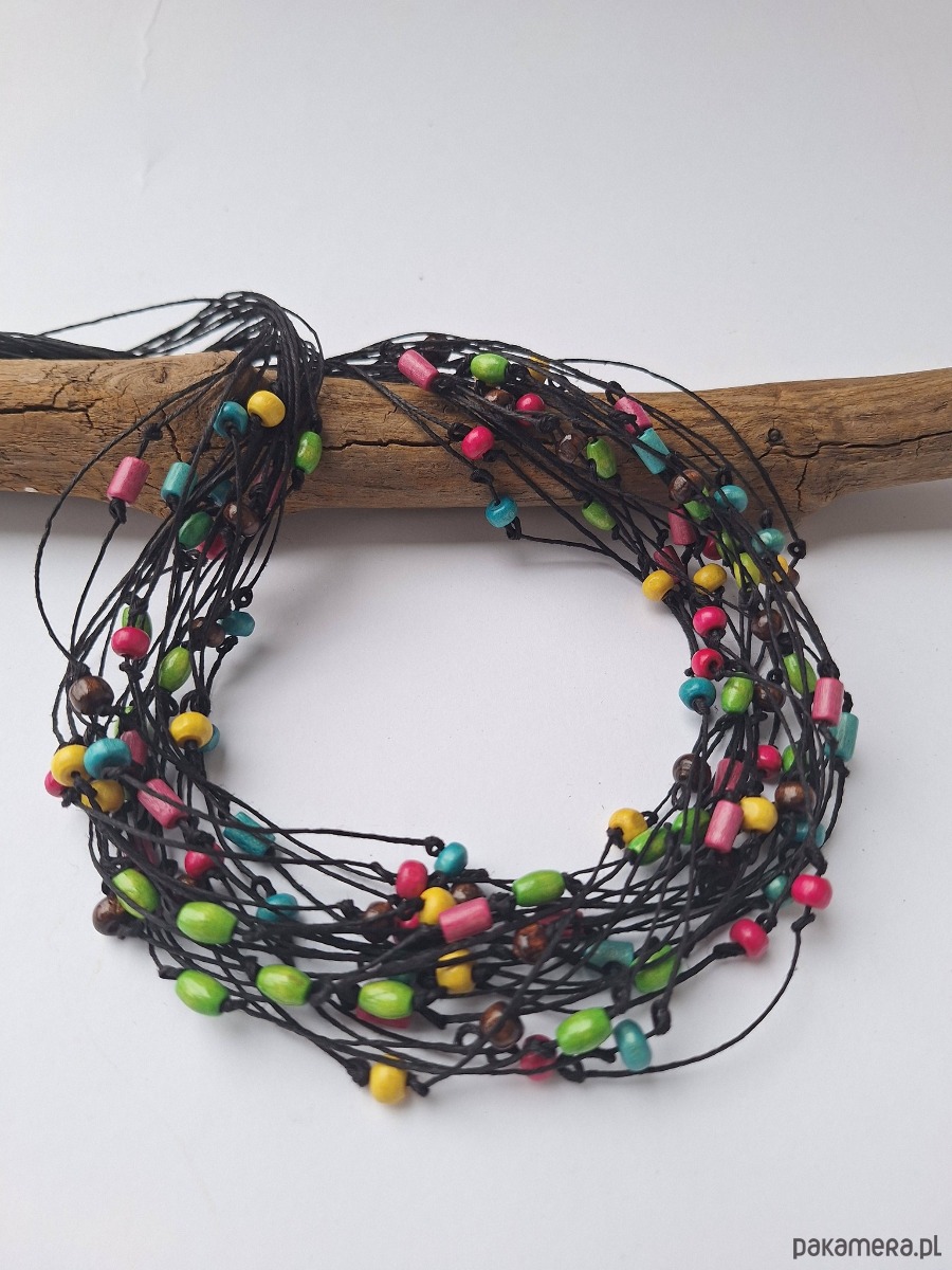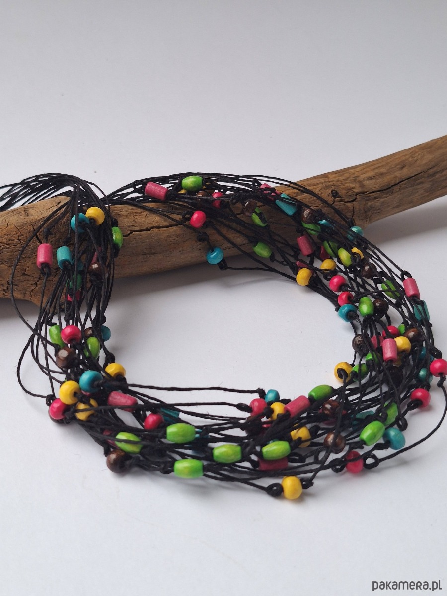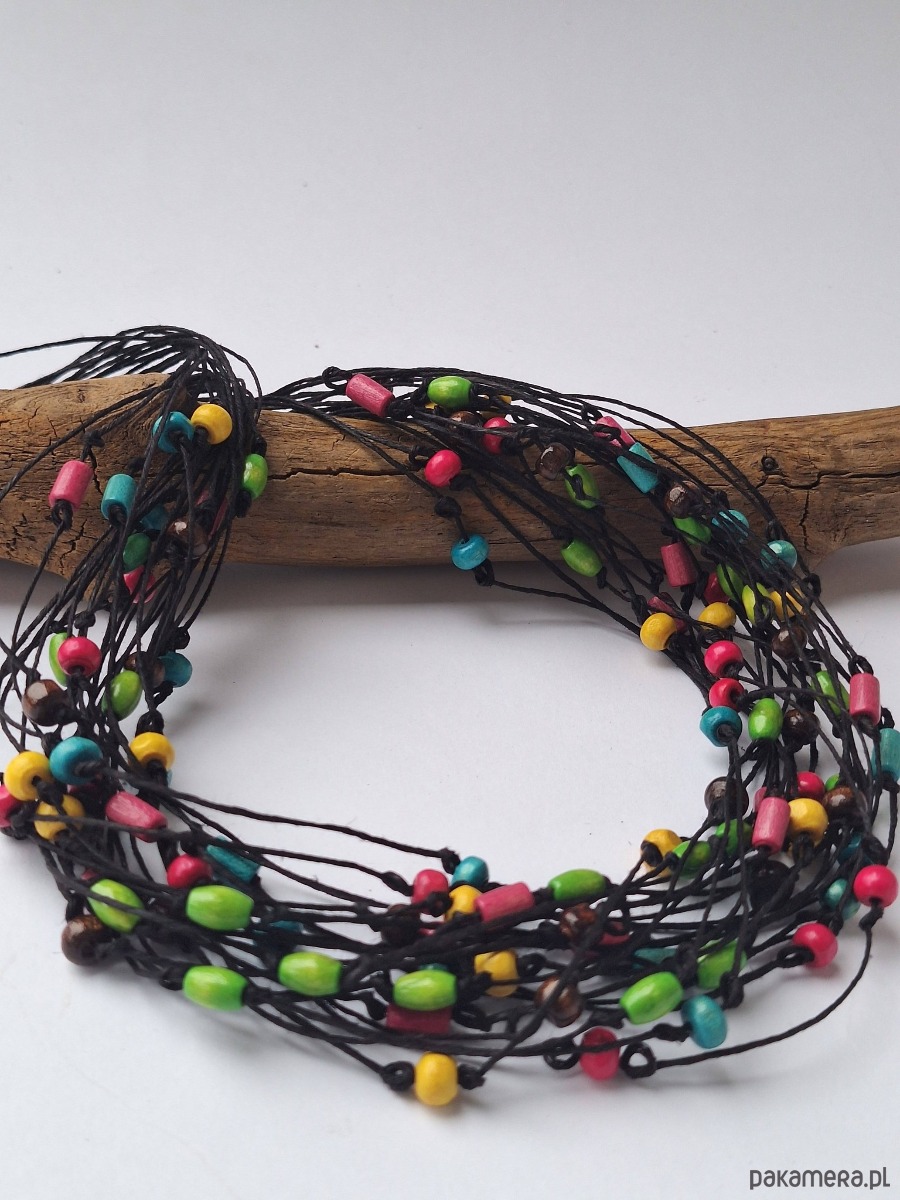Naszyjnik lniany z kolorowym drewnem.Energetyczny
