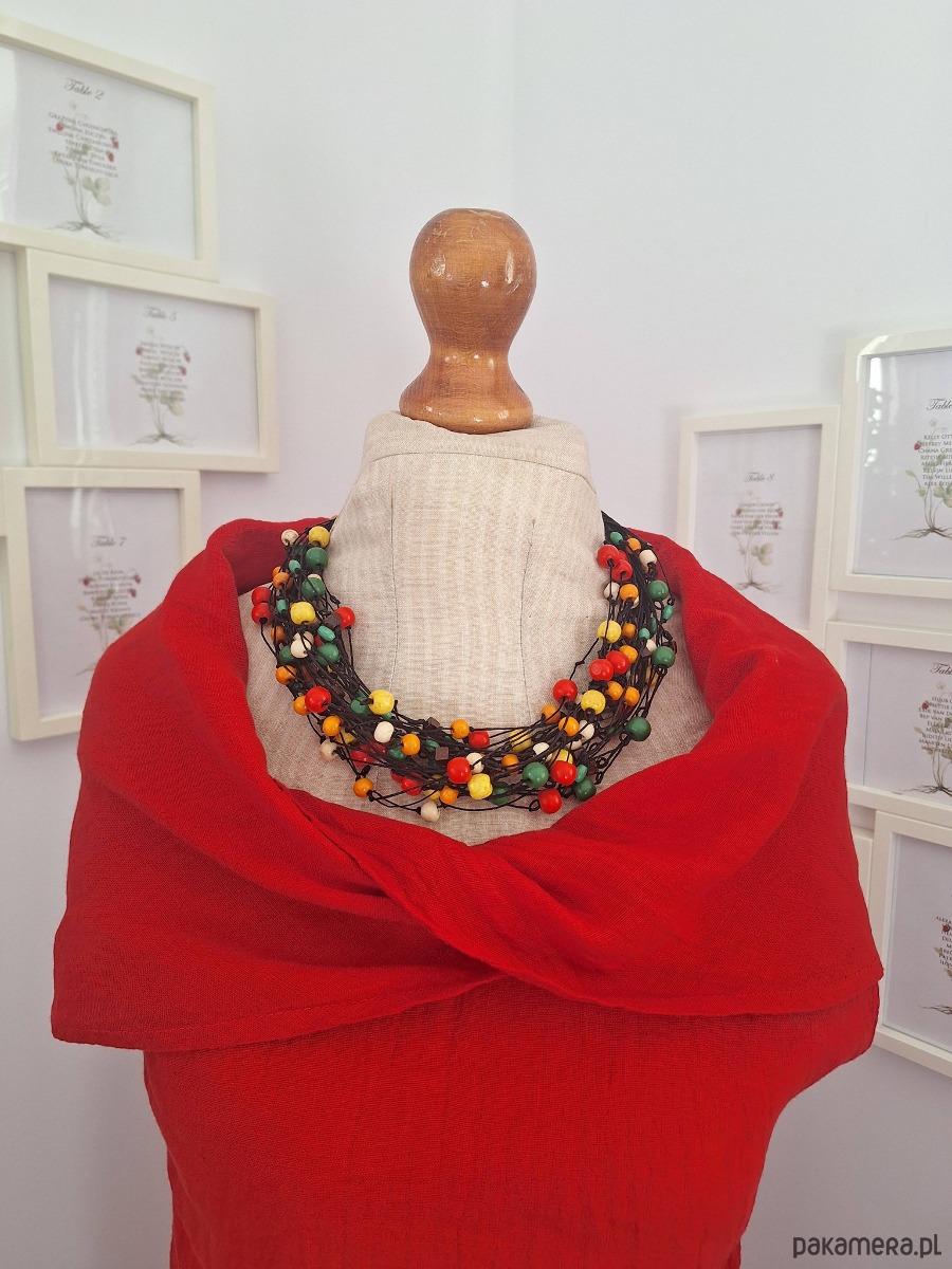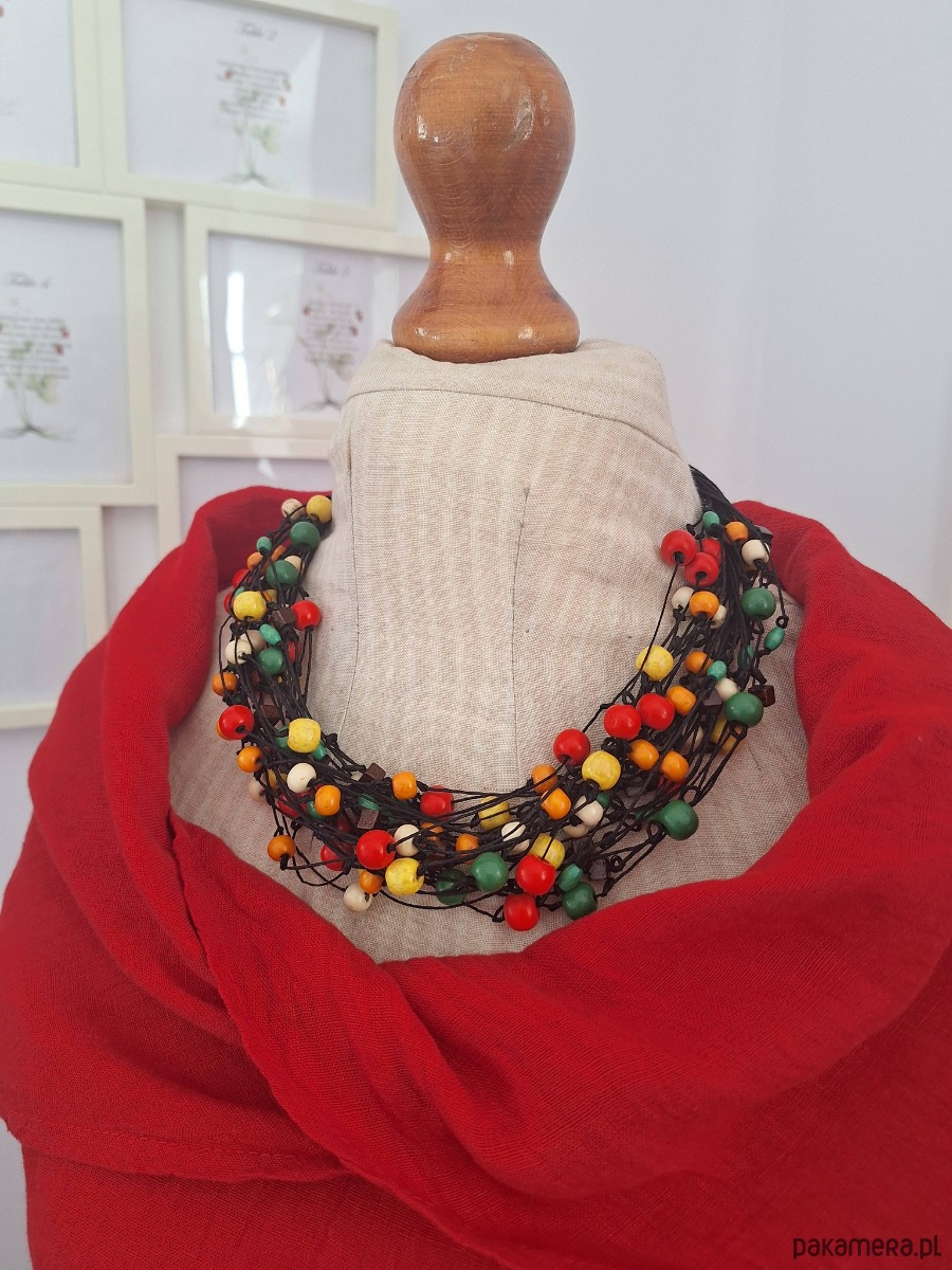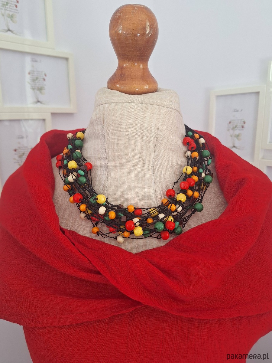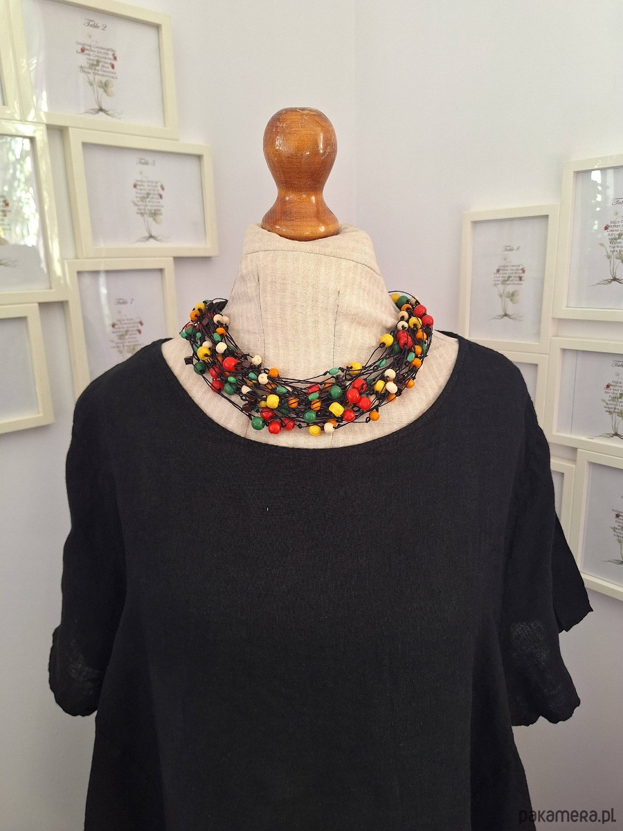 Naszyjnik lniany z kolorowym drewnem.Energetyczny