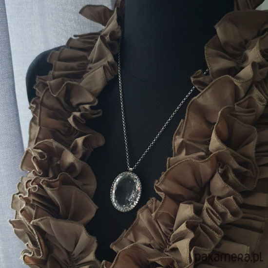 Naszyjnik Lodowy Owal - Kryształ Górski Srebro - Unikat