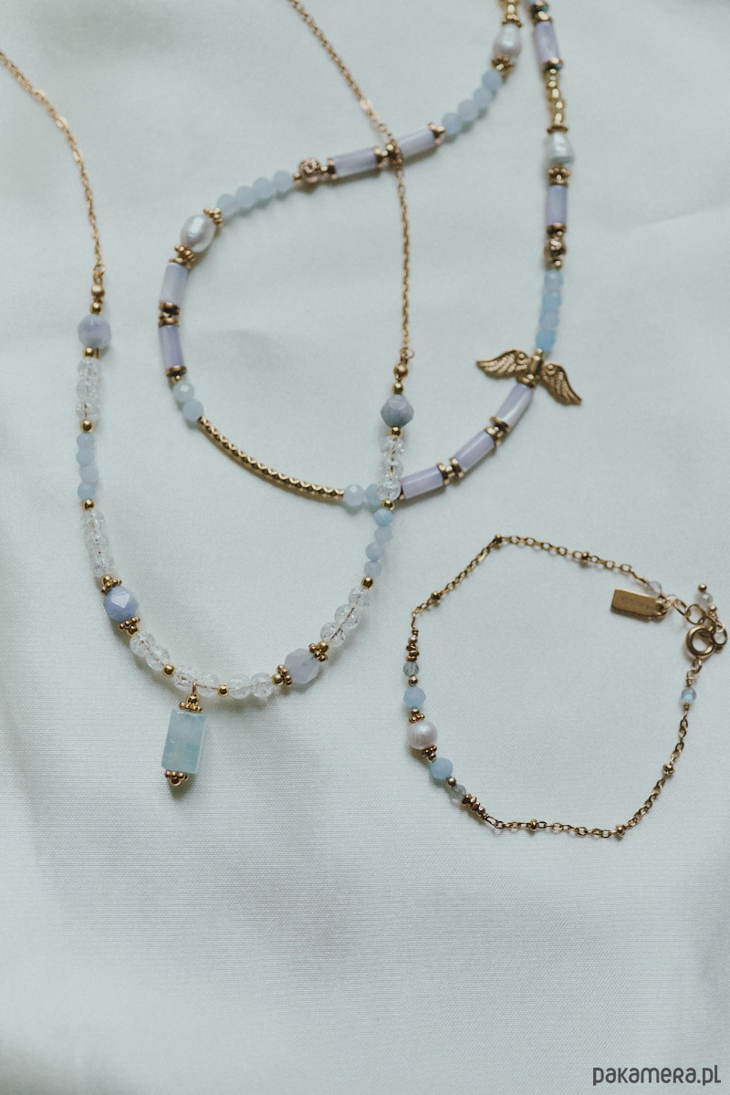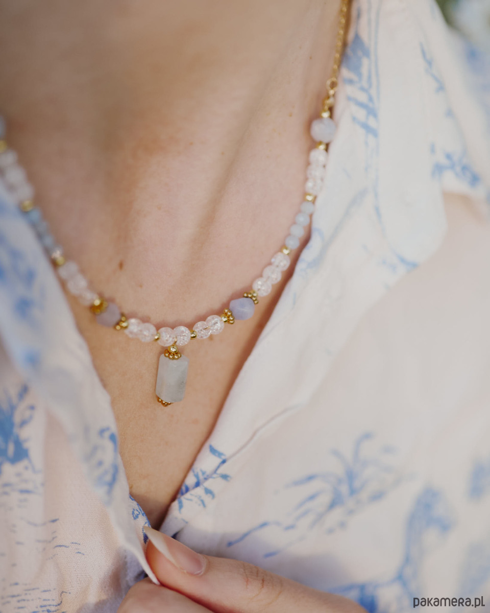 Naszyjnik Lukierek N.2, akwamaryn, turmalin i lodowy kryształ górski