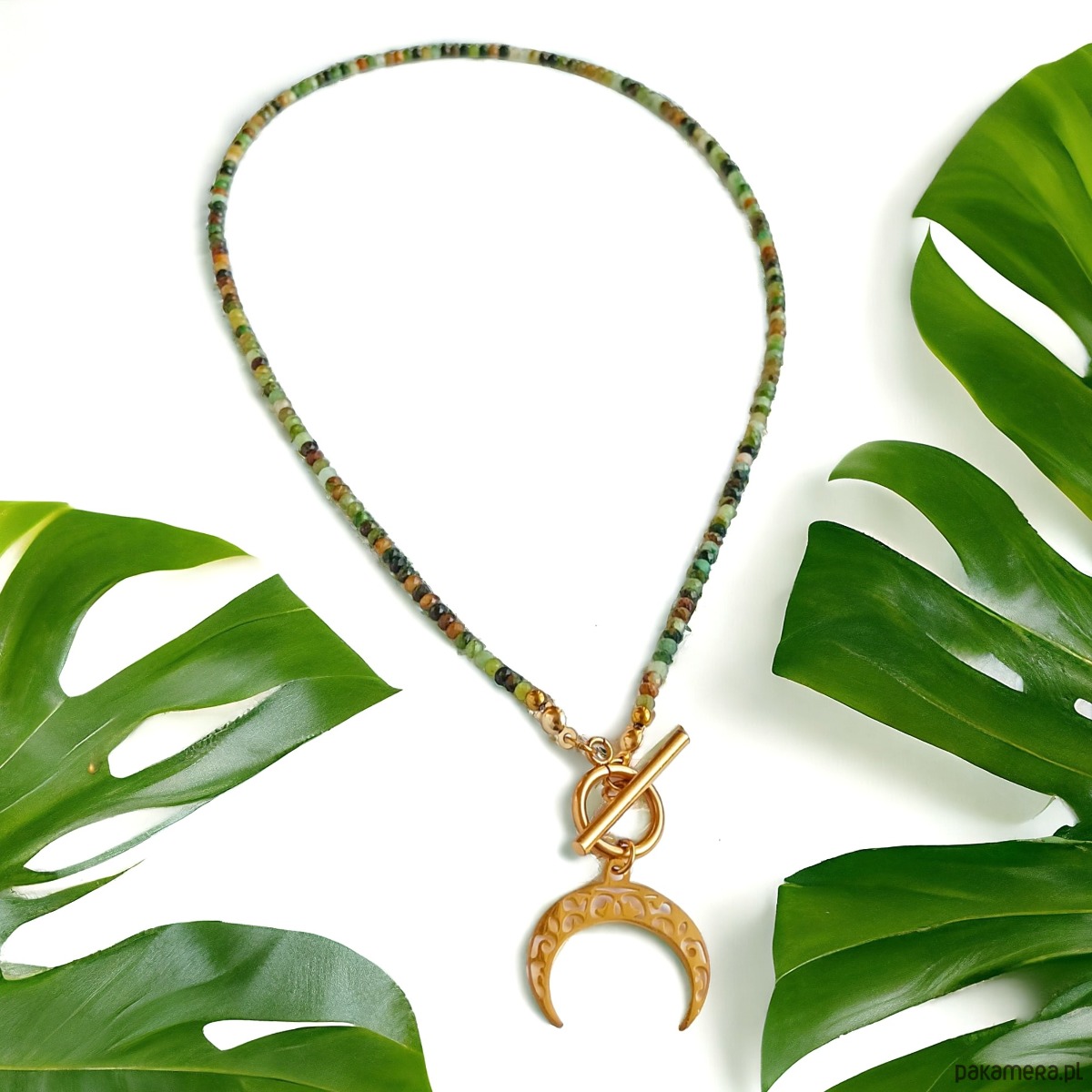 Naszyjnik LUNULA jadeit zielono-brązowy