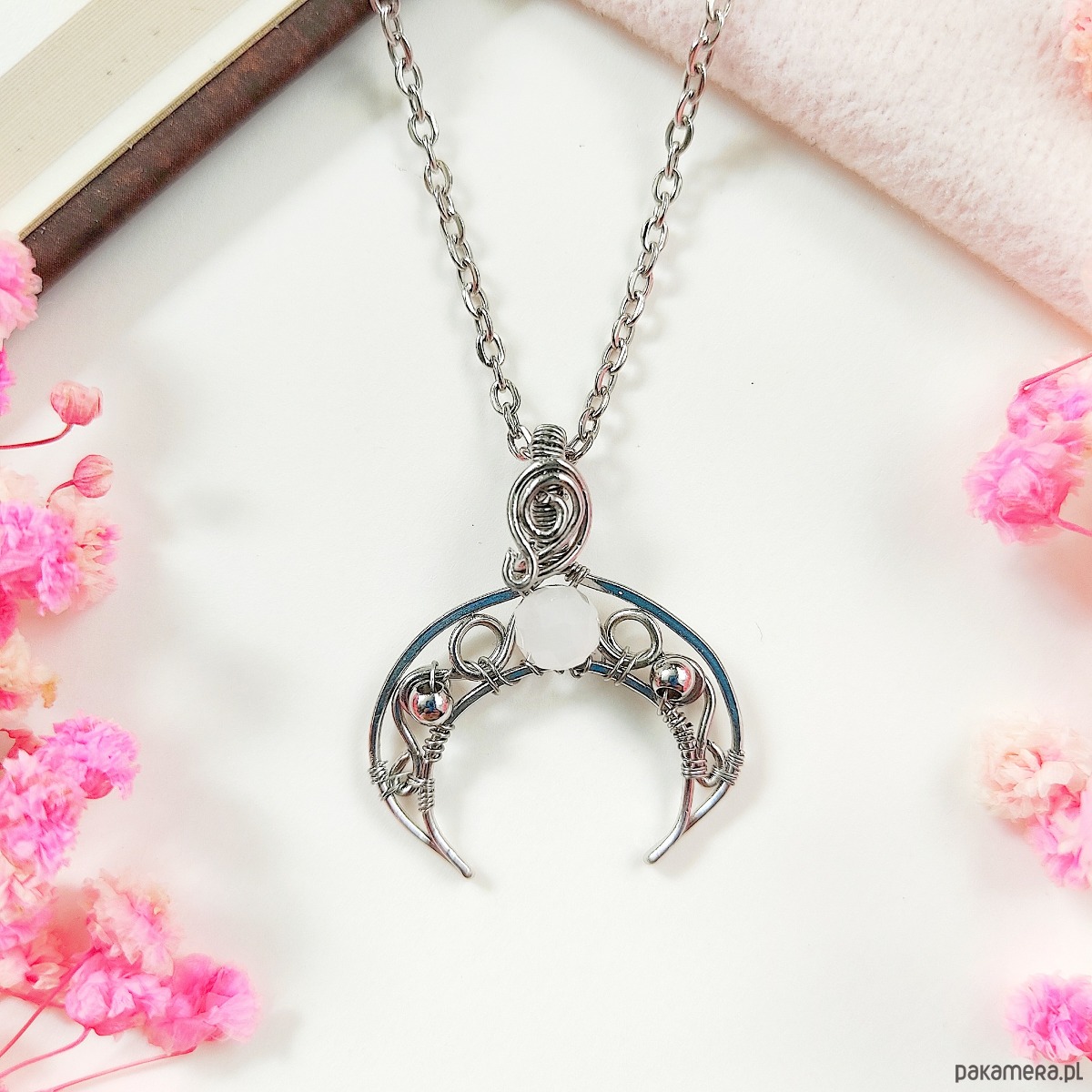 - Rękodzieło wire wrapping - precyzyjnie wykonany wzór lunuli sprawia, że naszyjnik jest jedyny w swoim rodzaju.