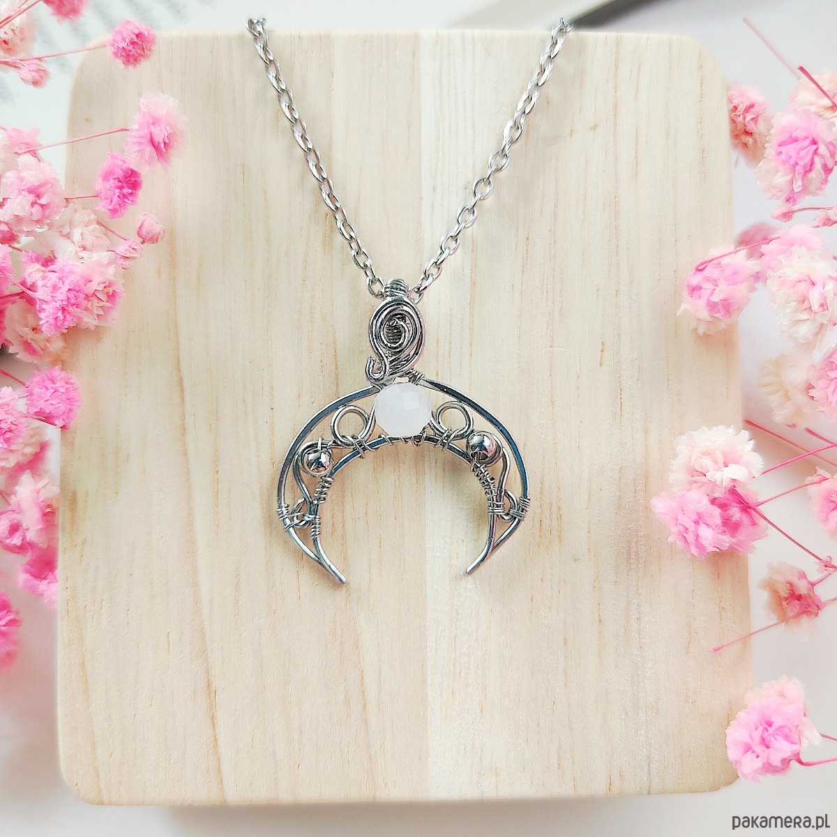 Naszyjnik Lunula Kamień Księżycowy stal chirurgiczna wisiorek handmade