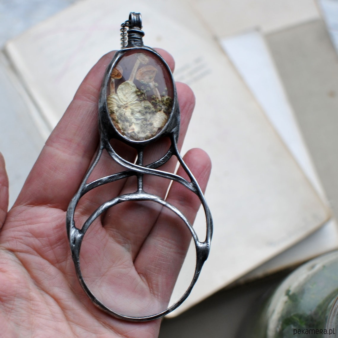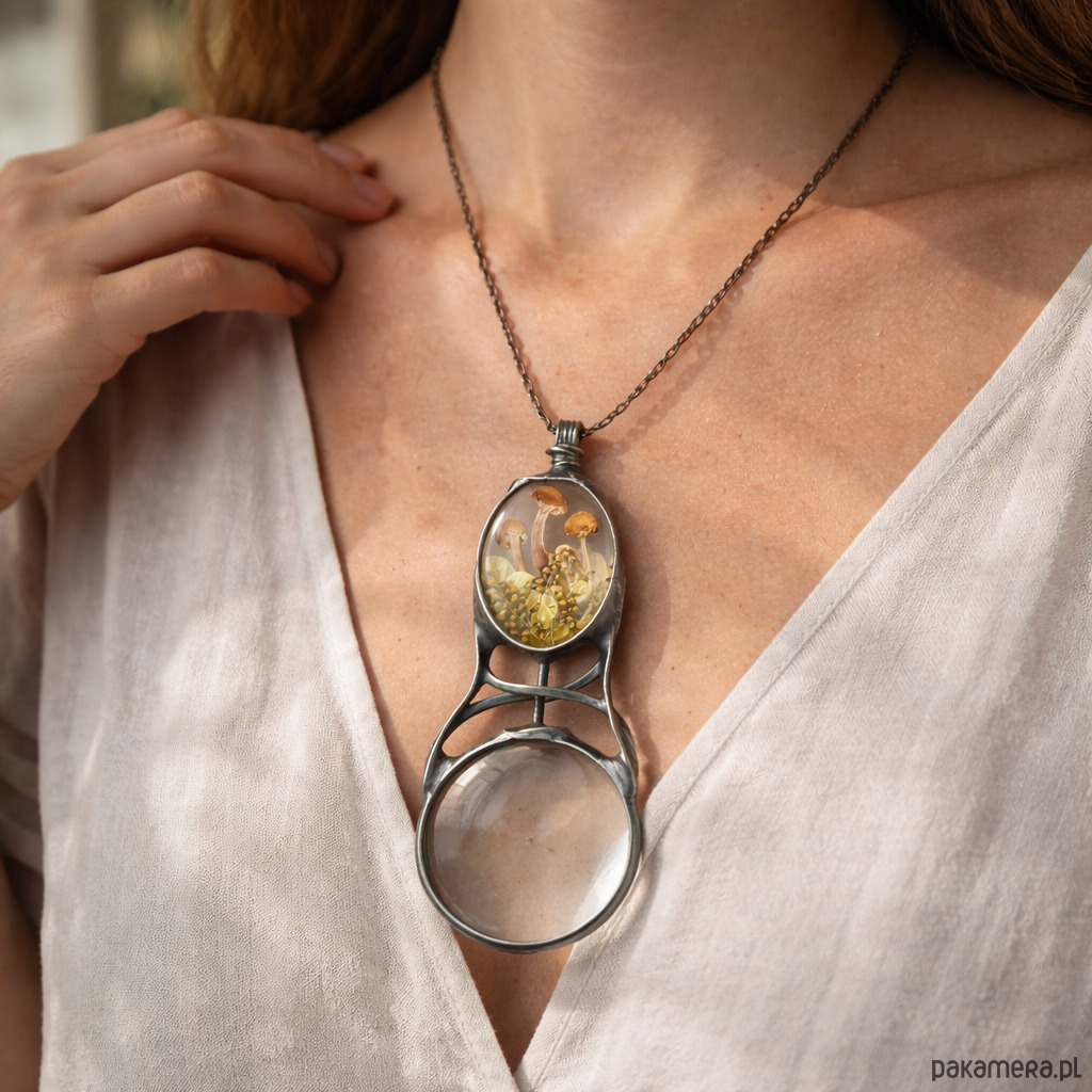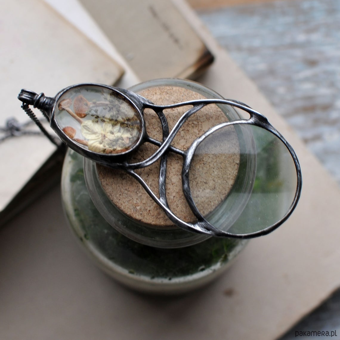 Oryginalny, duży wisior wykonany z prawdziwego szkła powiększającego.
