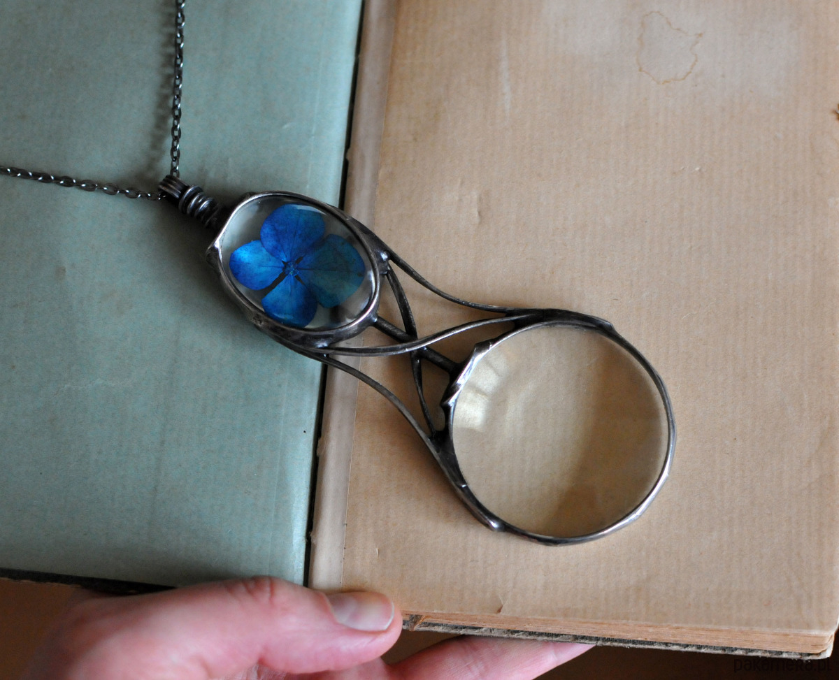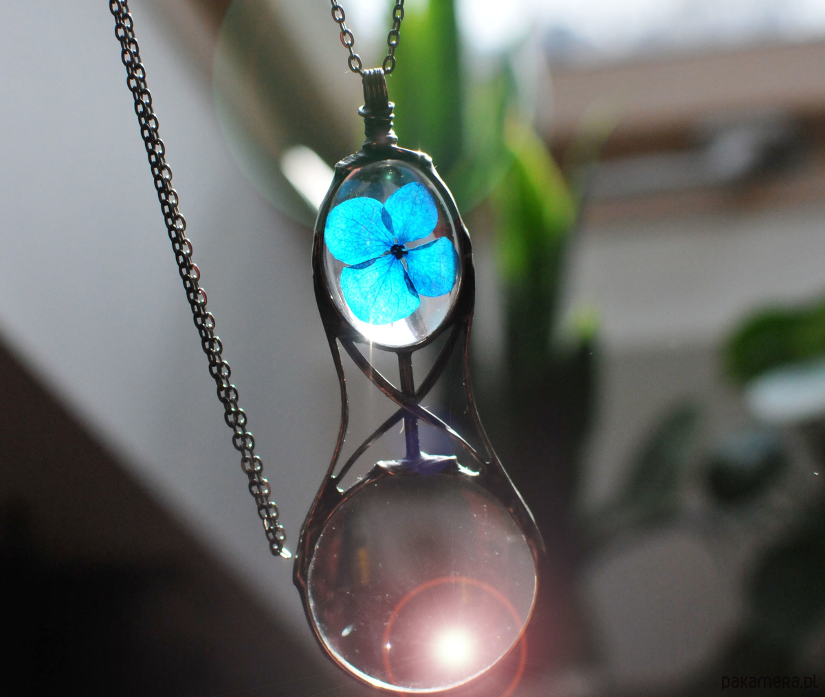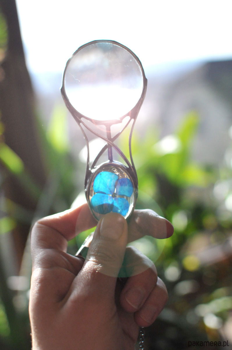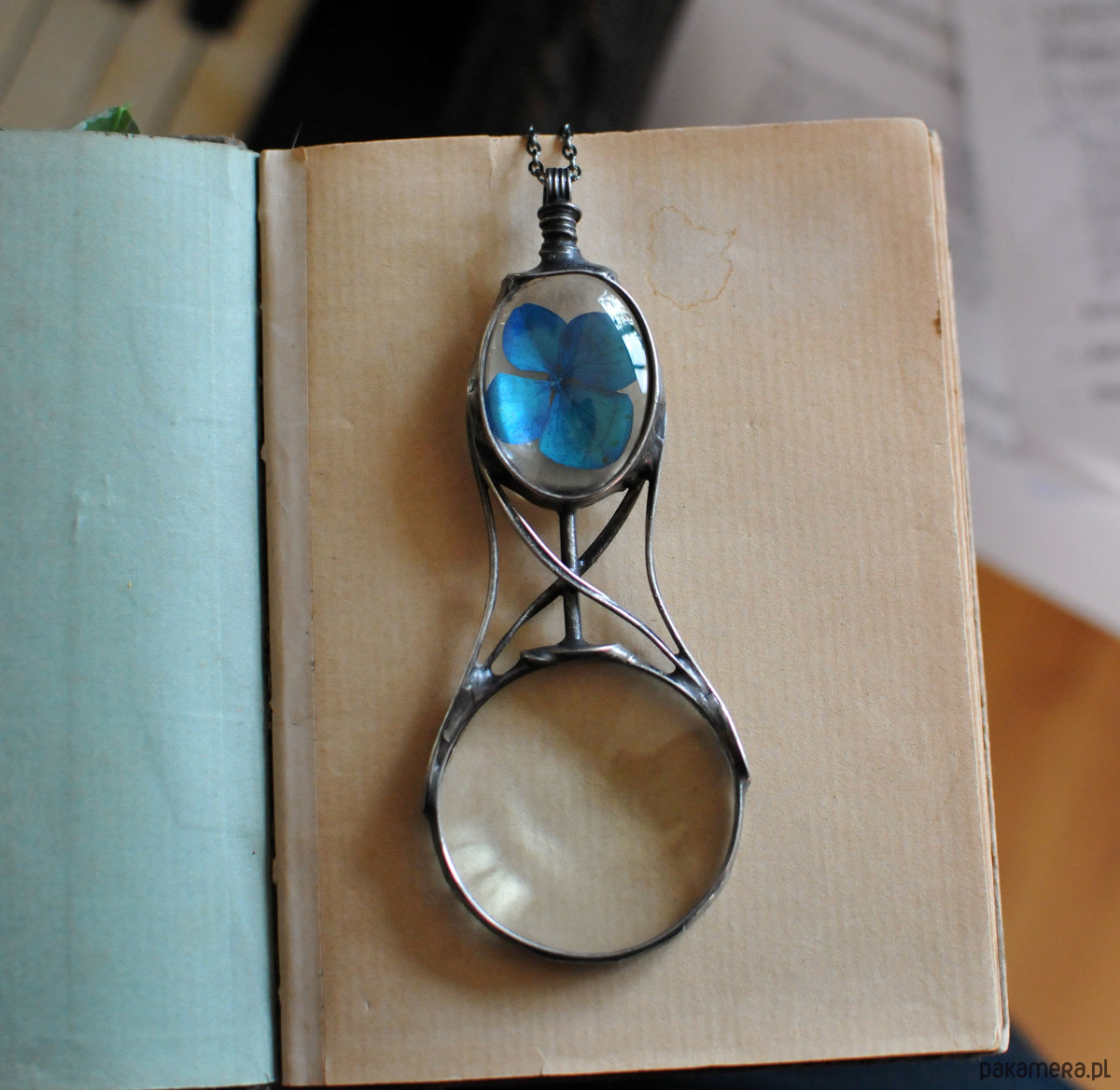 Oryginalny, duży wisior wykonany z prawdziwego szkła powiększającego.