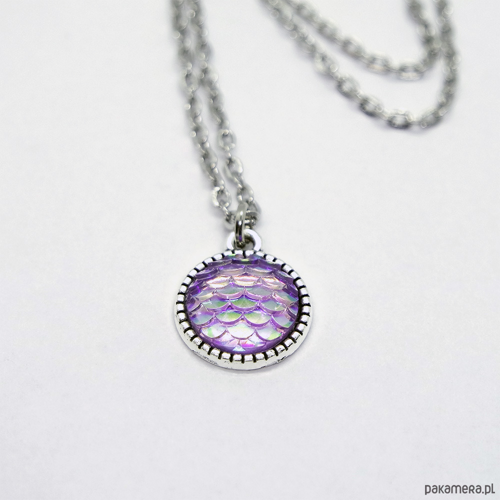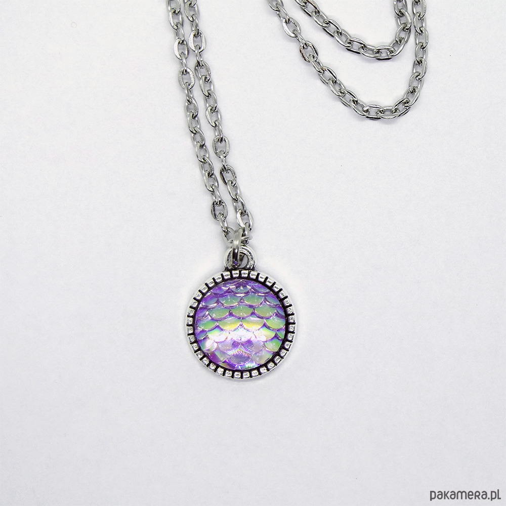 Niezwykłe, subtelny, mały naszyjnik z kaboszonem z żywicy imitującym łuski.