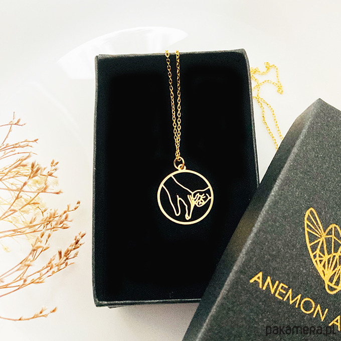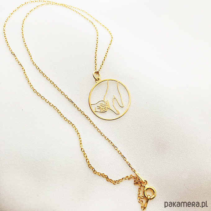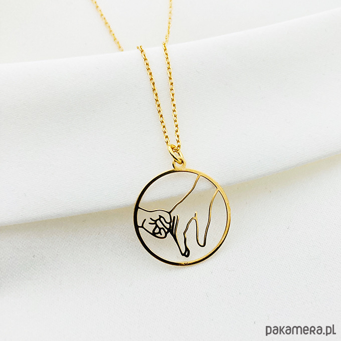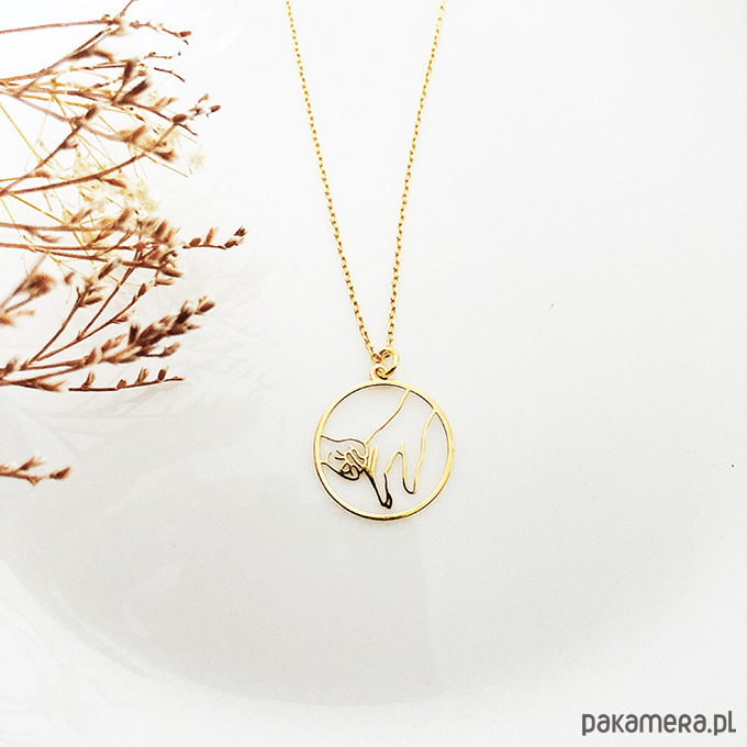 Delikatny naszyjnik z zawieszką z wizerunkiem dłoni mamy i dziecka. Wyjątkowo efektowny, można go nosić pojedynczo lub łączyć z innymi naszyjnikami. Całość jest wykonana ze srebra próby 925 złocona 24 k złotem. ( widoczny na zdjęciu naszyjnik z innym gestem dostępny w innej ofercie)
