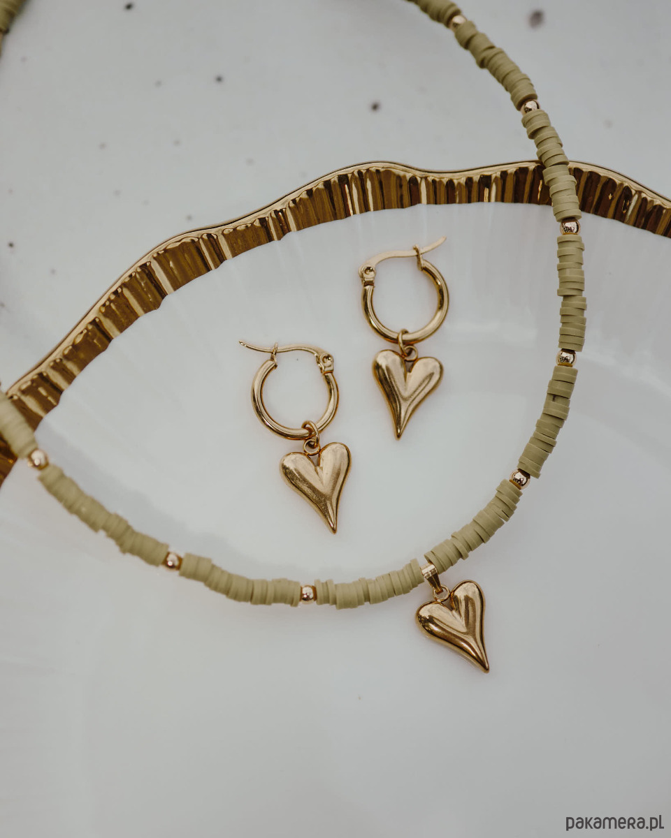 Biżuteria w pastelowych kolorach jest gorącym trendem już od kilku sezonów, idealna nie tylko na lato. Świetnie prezentuje się w zestawieniu z kolczykami w kształcie serc.