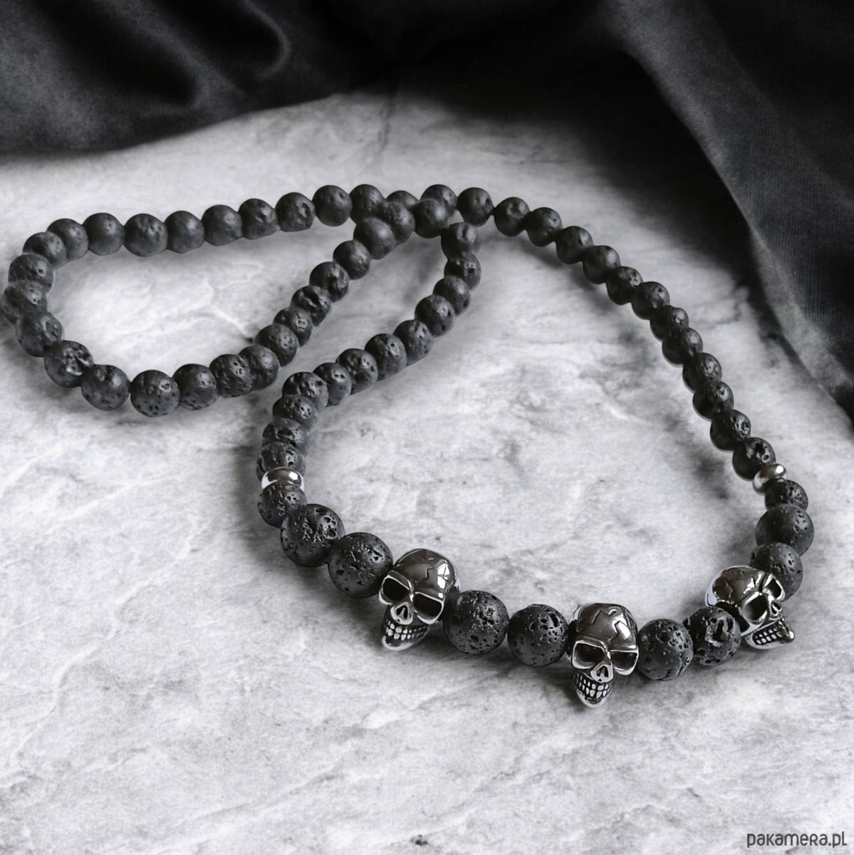 Naszyjnik MĘSKI - czachy - lawa & stal szlachetna
