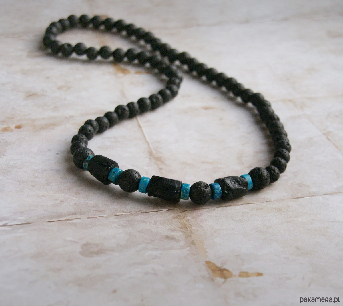 Naszyjnik MĘSKI : czarny turmalin, jaspis & lawa