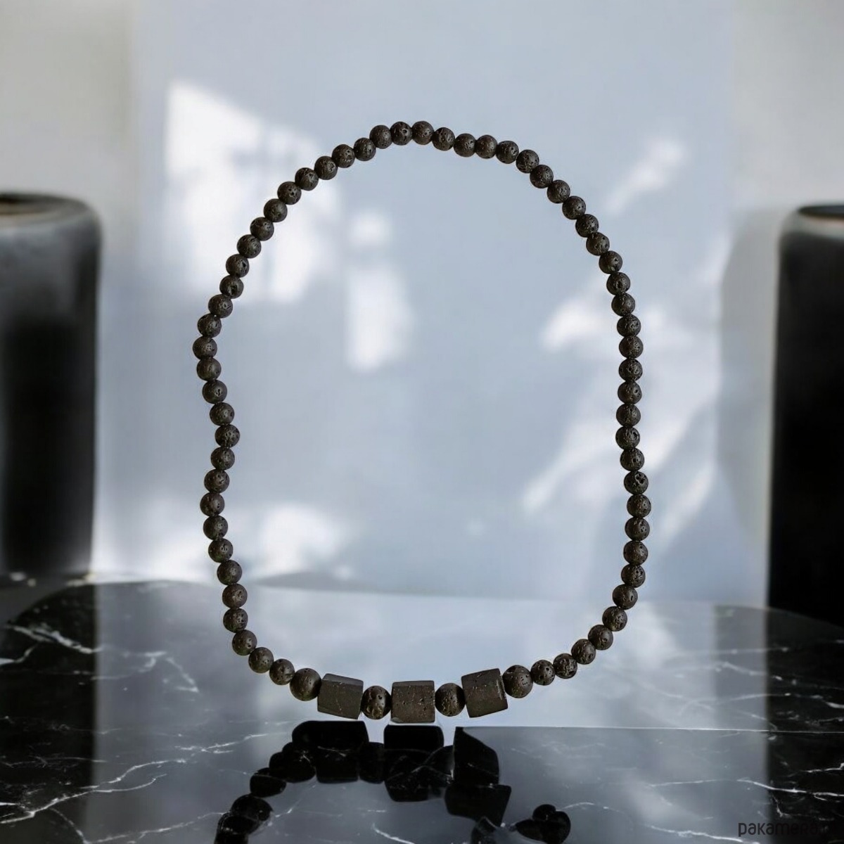 Naszyjnik MĘSKI : czarny turmalin & lawa